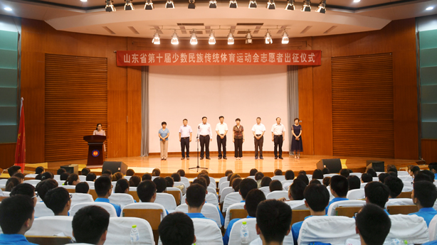 9月3日,学校在学苑会堂第二报告厅举办省第十届少数民族传统体育运动会志愿者出征仪式。我校党委副书记宋淑平,市委统战部副部长、市民族宗教事务局局长宋成琴,团市委书记张宪强,滨州技术学院副院长郎丰茂,市教育局副局长王学勇,市文化广电新闻出版局副局长赵立,市体育局副局长宋淑萍出席仪式。我校团委负责人、有关人员,以及150名志愿者参加了仪式。