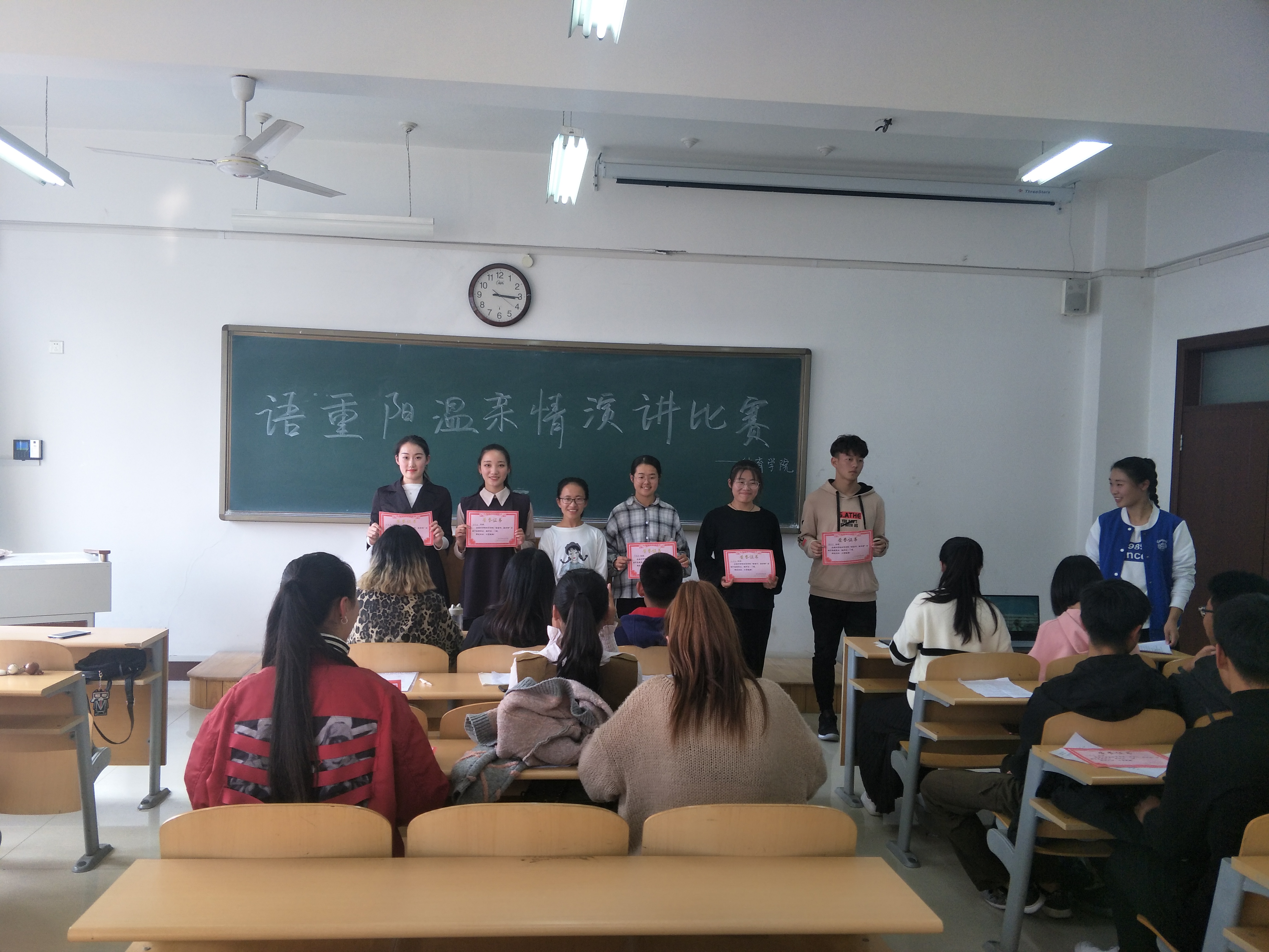 此次“语重阳温亲情” 演讲比赛充分展示了我院学子尊老爱老的优良作风,也提高了同学们努力学习的积极性,为以后的学习生活做好更充足的思想准备。