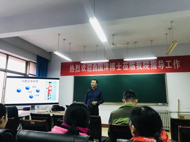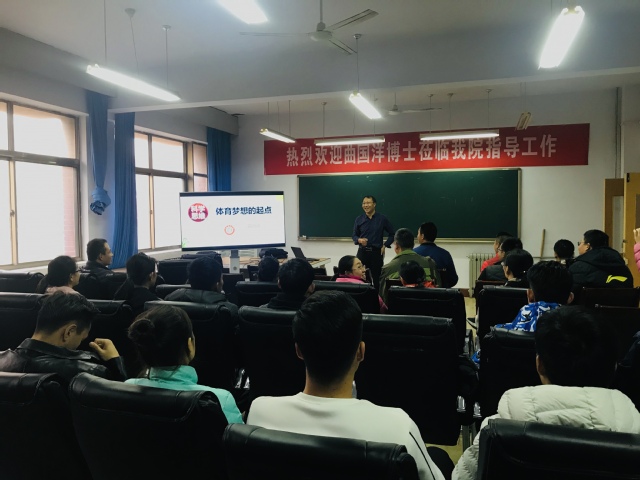 11月27日,山东英国365集团竞训处副处长、硕士生导师曲国洋博士应邀来校,在英国365集团会议室作了题为“体育梦与科研思维”的学术报告。