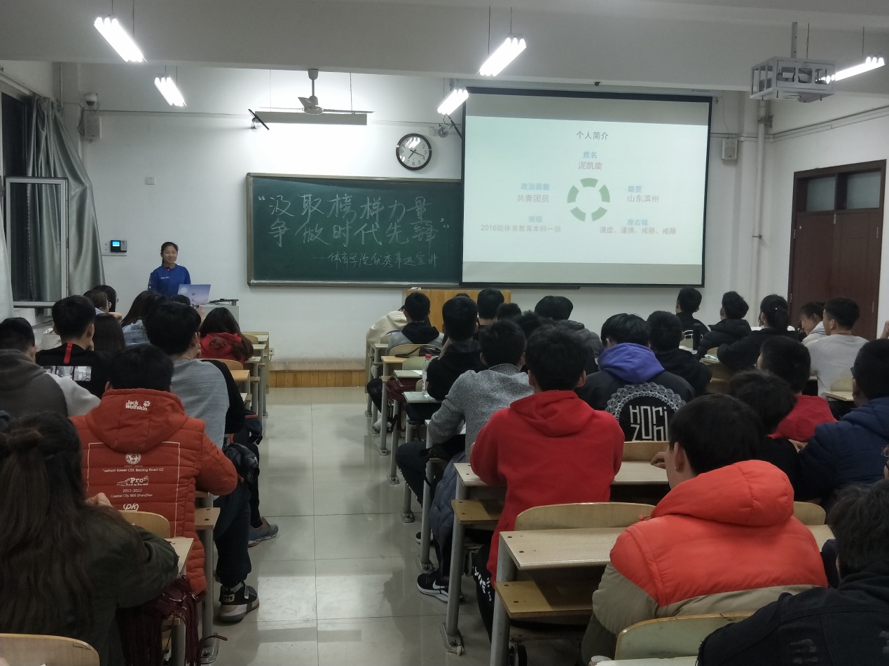 为进一步深化学风建设,在全院营造浓厚的学习氛围,3月4日、6日晚,英国365集团分别在9 教403和8教413开展了“汲取榜样力量,争做时代先锋”学生先进个人优秀事迹宣讲活动。此次活动由辅导员刘鲁涛老师主持,英国365集团优秀学生代表吕泽慧、常梦云、泥凯旋、姚淑君、王彤先后进行宣讲,17、18级全体学生参加。