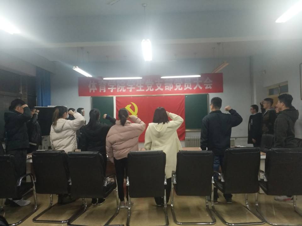 会议由学生科科长王洪运主持,他介绍了参加会议的人员,以及本次会议的流程;然后所有学生党员结合自身党员身份和职务总结了前期工作,并围绕学生党员如何发挥模范带头作用依次进行了发言;党总支书记、院长马新民对学生党员在各方面工作中的付出与所做的努力提出了表扬与肯定,对学生党员如何发挥模范带头作用提出了几点要求,他要求学生党员应在思想政治上做表率、在学习上做标兵、在工作上做典范、组织纪律上要严明、社会工作能力要突出;最后,在王洪运老师的领誓下,全体党员面向党旗,高举右拳,一起重温了入党誓词。
