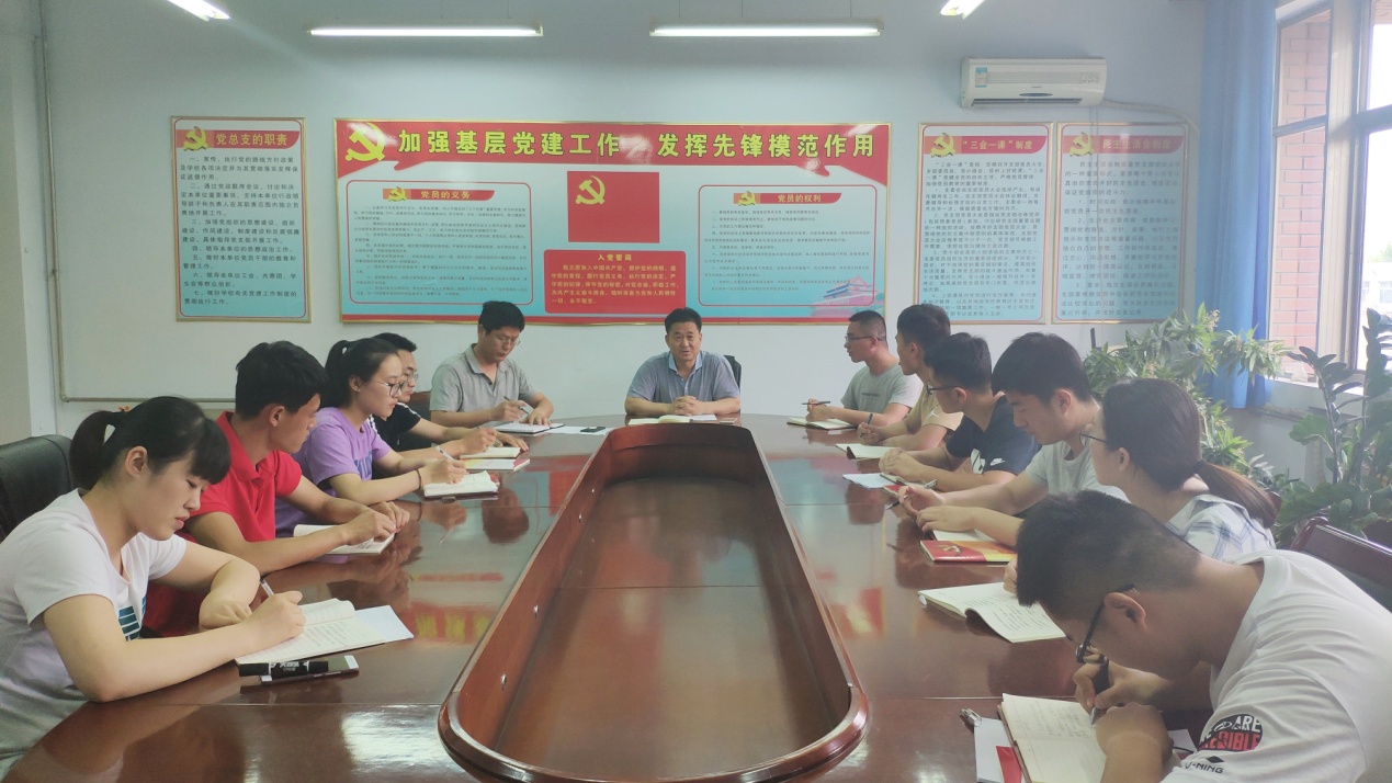 座谈会中,首先,毕业生党员分别进行了发言,讲述自己大学期间的学习、生活经历及成长感悟,畅谈自己在校期间学习生活的体会与感受,衷心表达了对母校的感激与依依不舍之情,并对母校未来的发展送上了美好祝愿。然后,党总支书记、院长马新民分别在珍惜党员身份,强化党员意识,忠诚于党和人民;坚定理想信念,做社会主义核心价值观的践行者;怀揣梦想,把握青春,开创崭新的人生之路三个方面为毕业生党员上了一堂生动的专题党课。他指出,党员要始终牢记党员的责任和义务,不断增强党性修养;要增强宗旨意识,用心服务群众;增强四个意识,做政治上的明白人。他嘱托毕业生党员,要学会把握自我,靠自己的努力做好事业的开渠人。在今后的工作中,要从小事做起、从难事做起,要懂得适应社会,要不断学习,找准自己的优势,要以实现理想,献身祖国发展为目的。最后,全体党员在学生科科长王洪运老师的领誓下,面向党旗,高举右拳,一起重温了入党誓词。