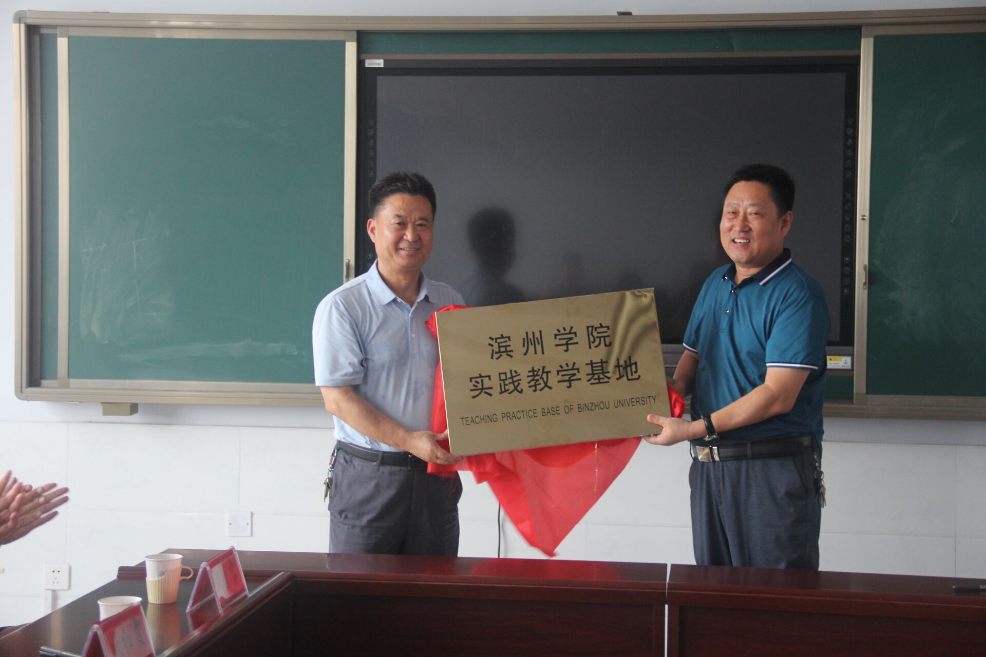 最后,滨州学院英国365集团张红霞副院长与无棣县第二初级中学陈延永校长签订联合办学协议,马新民院长向陈延永校长授牌。