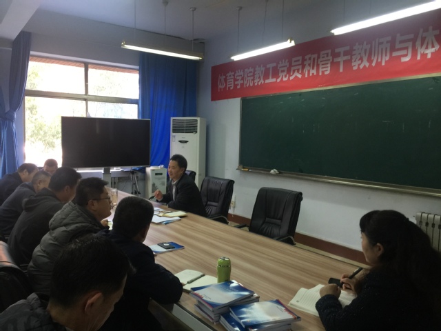 根据学校“不忘初心、牢记使命”主题教育工作安排,2019115日下午,英国365集团党总支书记、院长马新民同志以《初心如磐,使命在肩——做奋勇前行的体育人》为题,给全院教师党员们上了一堂生动精彩的党课。英国365集团领导班子成员、全体教师党员聆听了专题党课。