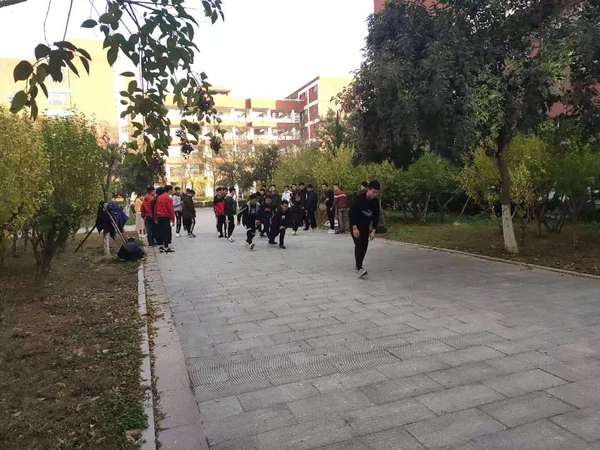 2019年11月10日,朱春明老师带领定向运动社团新成员进行第一次定向技能培训。一代老人换新人,转眼间,一年的时间又过去了,新鲜的血液预示着新的希望。教室里,老队员毫无保留的传授着知识和经验。寒风中,老队员们带着新队员们进行着拉伸,压腿,之字跑等热身活动。一切的一切都有条不紊的进行着。朱老师针对新队员的情况在八九教西侧小花坛之间设置了百米定向小比赛,为了夯实识图基础,规定只能走动打点。逐步提高队员水平。