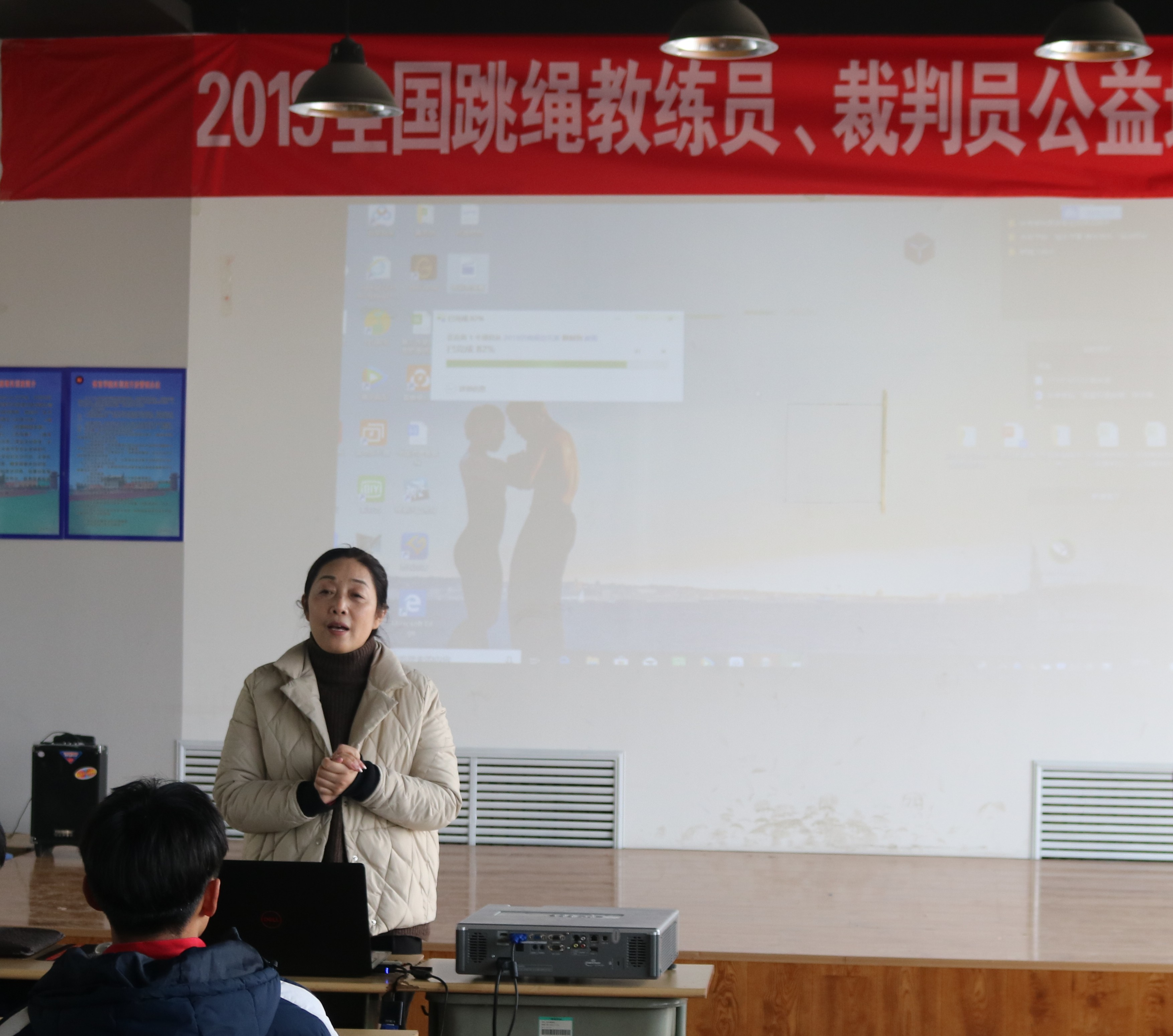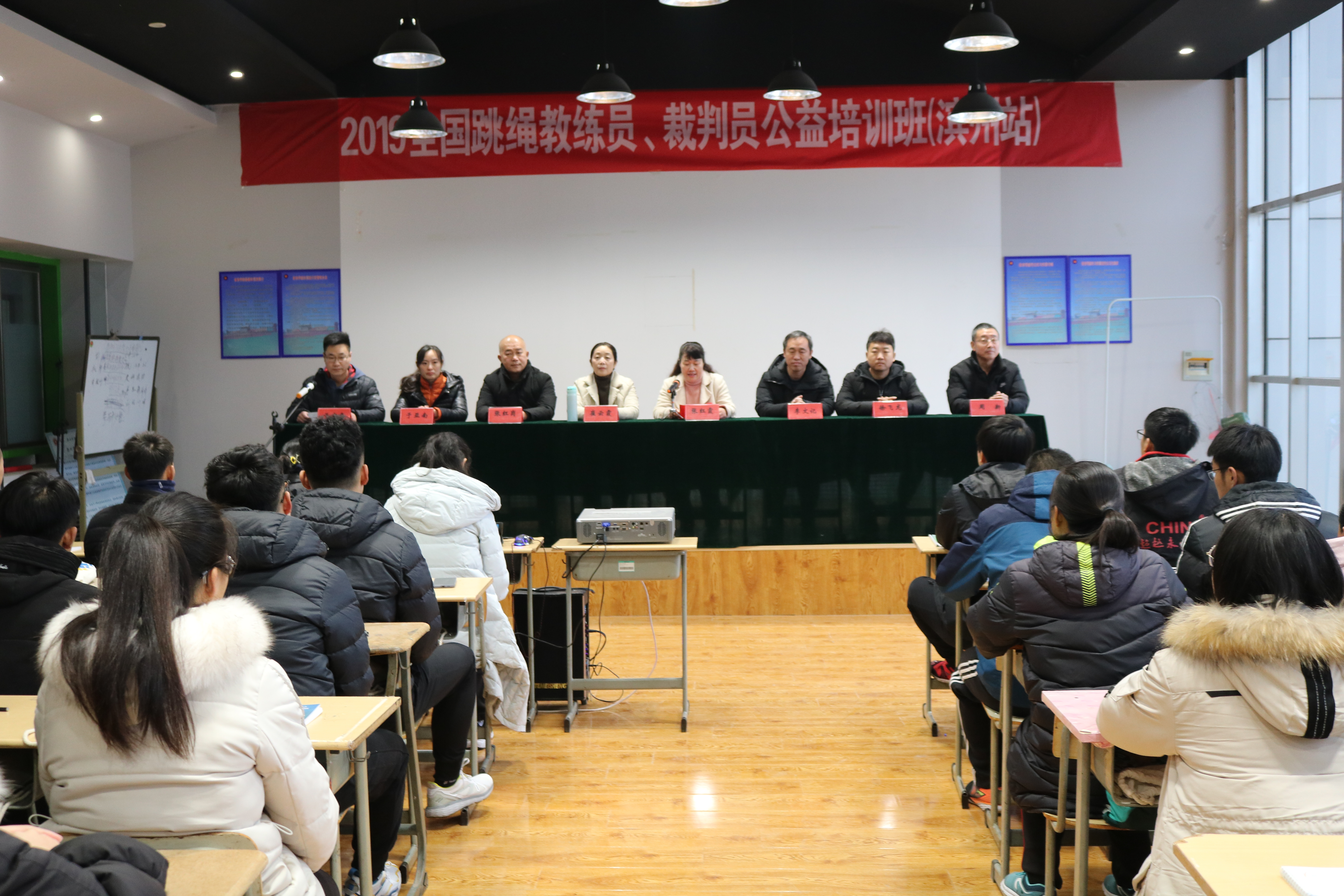 12月21日上午9点,开班仪式在滨州学院顺利进行。出席仪式的领导嘉宾有,跳绳国际级裁判、国家级培训导师崔云霞,山东省跳绳协会会长李文记,山东省跳绳协会副会长、国家级培训导师张红岗,山东省跳绳协会副会长徐飞龙,山东省跳绳协会执行秘书长于亚南,滨州学院英国365集团副院长张红霞,滨州学院英国365集团体育艺术教研室主任周新,滨州学院跳绳队教练于宏亮,仪式上张红霞致欢迎词,介绍近年来滨州学院跳绳运动开展情况以及明年跳绳工作计划,李文记会长致辞,介绍近年来国内跳绳运动发展情况,鼓励学员们与时俱进,提高跳绳运动教学能力,为推广普及跳绳项目继续努力。