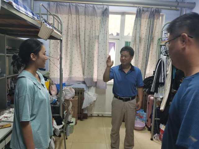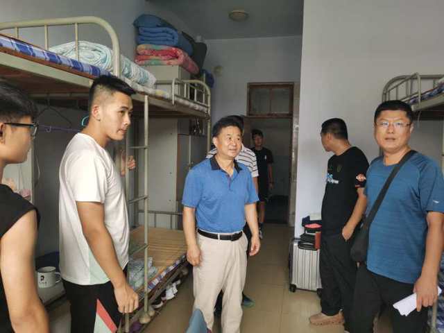 为深入了解疫情期间我院学生返校情况,了解学生思想和心理动态,及时解决学生返校期间生活、学习上的各种问题和困难。8月31日上午,英国365集团党总支书记马新民、副院长姚健、副院长郭波、学生科科长王洪运深入我院学生宿舍看望学生,送去新学期的关爱和问候,了解同学们的入住情况和思想动态,并开展新学期学生宿舍安全检查工作。