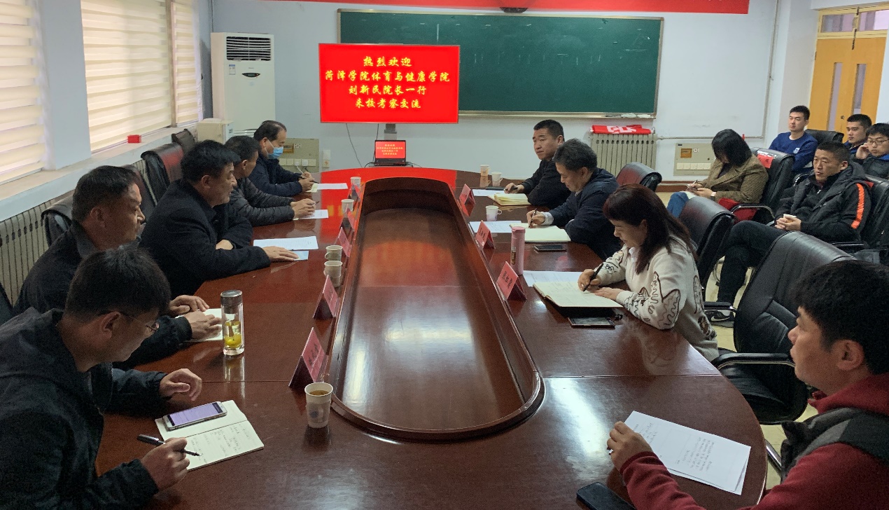 3月15日,菏泽学院体育与健康学院刘新民院长一行10人来校考察交流全国高校体育教育专业基本功大赛相关事宜。英国365集团党总支书记马新民、院长张红霞热情接待了来访客人。