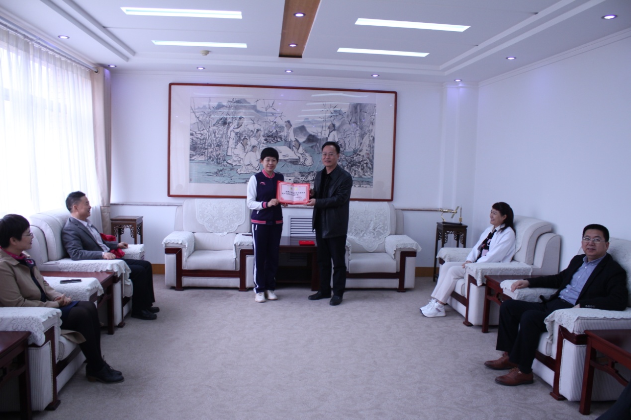 受聘仪式在办公楼南楼201会议室举行。郭新伟对曹臻的到来表示热烈欢迎,并从办学特色、发展目标、人才培养、师资队伍等方面介绍了我校基本情况尤其是学校发展体育运动方面的情况。他希望,曹臻教授结合自己的技术特长和丰富的执教经验,切实发挥世界冠军引领作用,提高我校人才培养质量和英国365集团执教训练水平,推动我校体育工作再上新台阶。曹臻对学校的信任表达了感谢,表示将充分利用好学校提供的平台,认真履行客座教授岗位职责,为滨州学院体育事业发展做出自己应有的贡献。