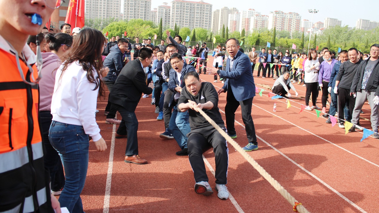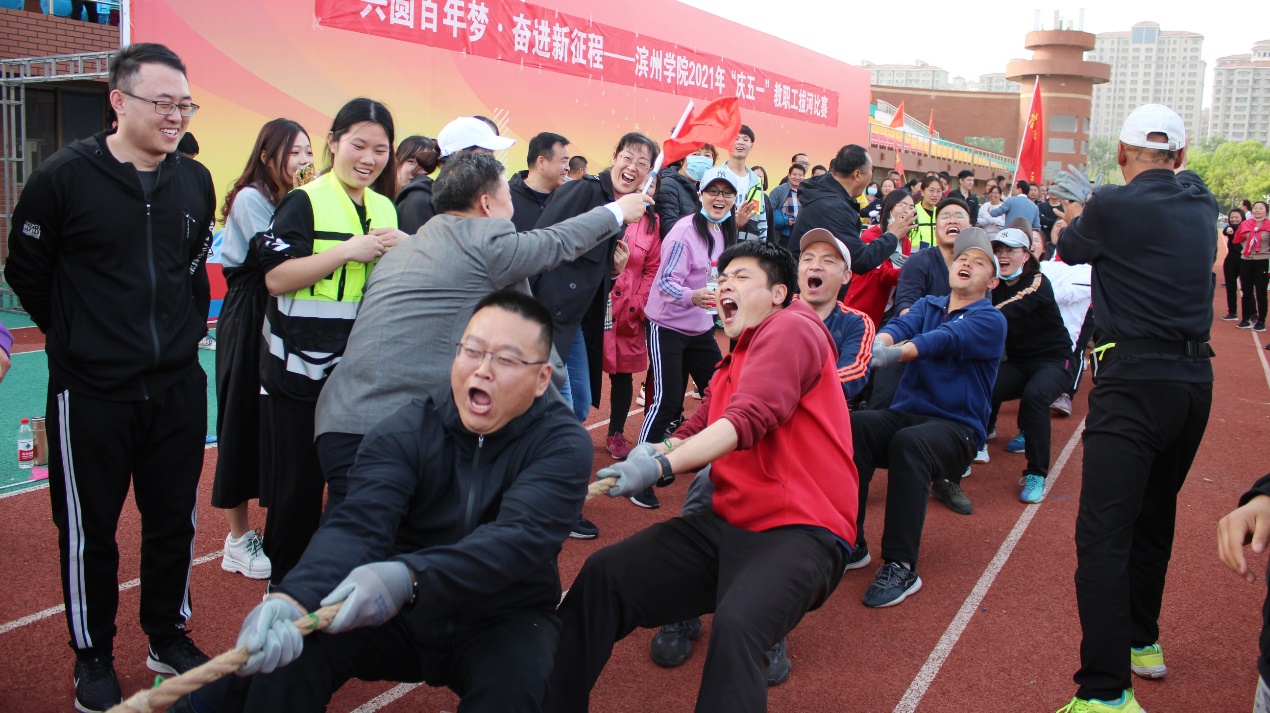 4月27日下午,以“共圆百年梦 奋进新征程”为主题的滨州学院2021年“庆五一”教职工拔河比赛在学校田径场成功举行。学校党委委员、副校长孙银河出席活动并为获奖分会颁奖,工会、英国365集团负责人和各基层分会主席参加活动,来自23个基层分会的近500名教职工参加了比赛。