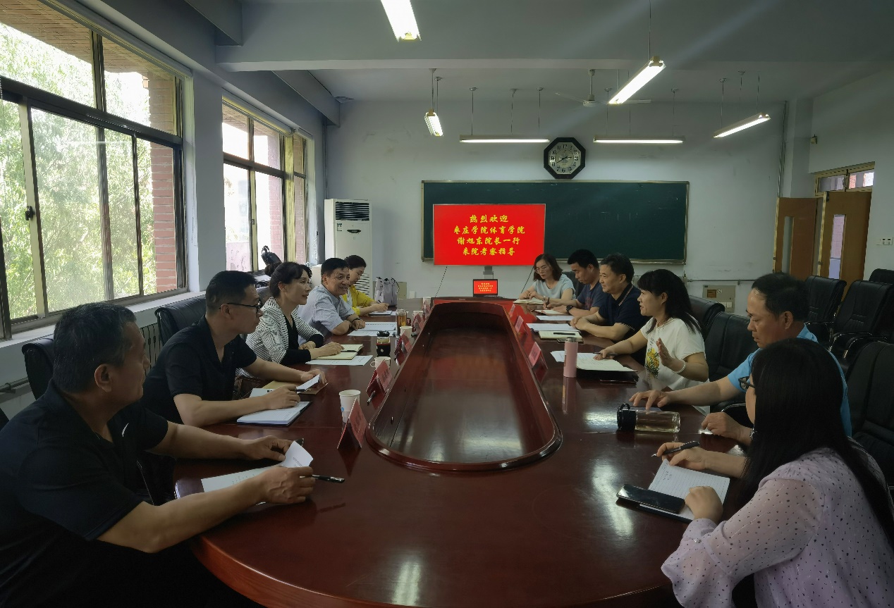 张红霞院长就我校参加2019年全国高校体育教育专业基本功大赛做了详细介绍,并分享了基础理论课和运动技能类项目的复习与备战经验。随后双方针对体育学科建设展开交流,相关专项教师分别进行了深入探讨。