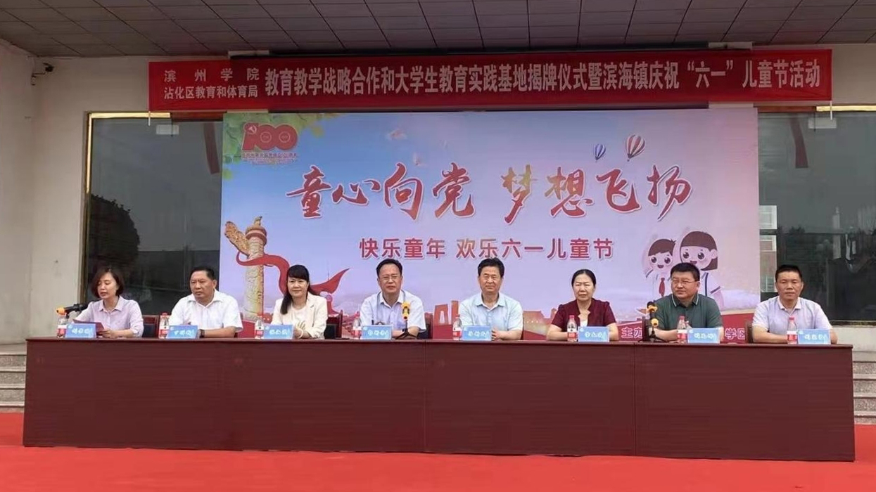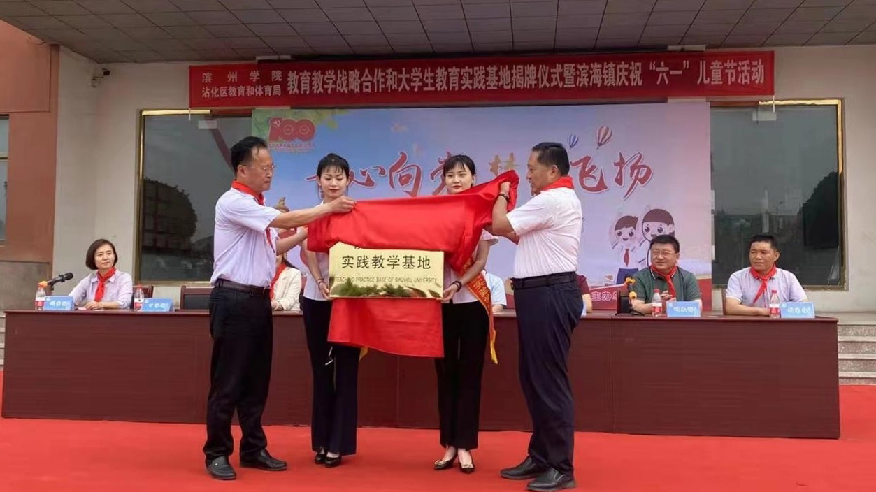 6月1日, 我校与沾化区教育和体育局教育教学战略合作和大学生教育实践基地揭牌仪式在沾化区滨海镇实验学校举行。我校党委委员、副校长郭新伟,沾化区教育和体育局局长丁明新,滨海镇党委书记阚玉辉等出席仪式。