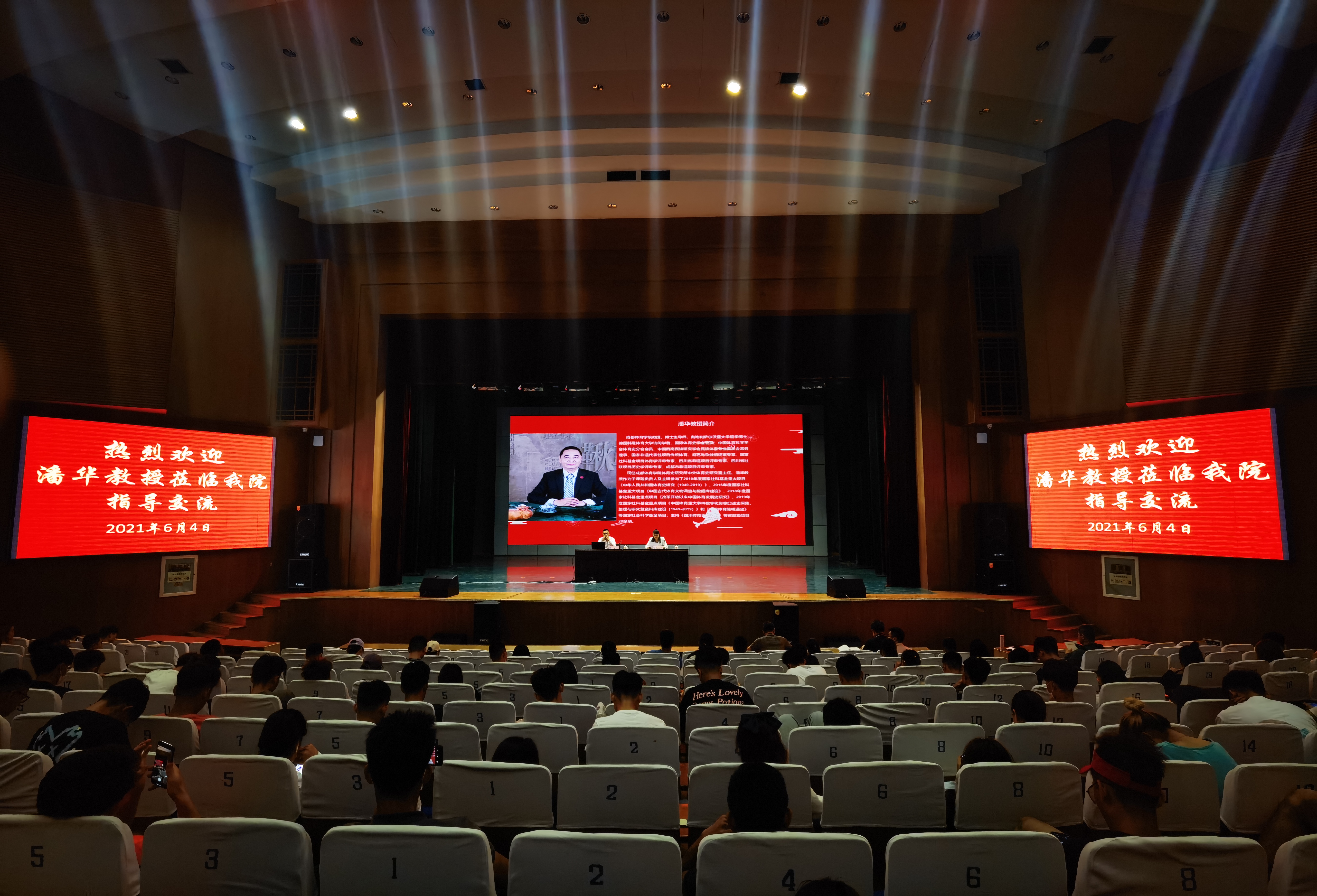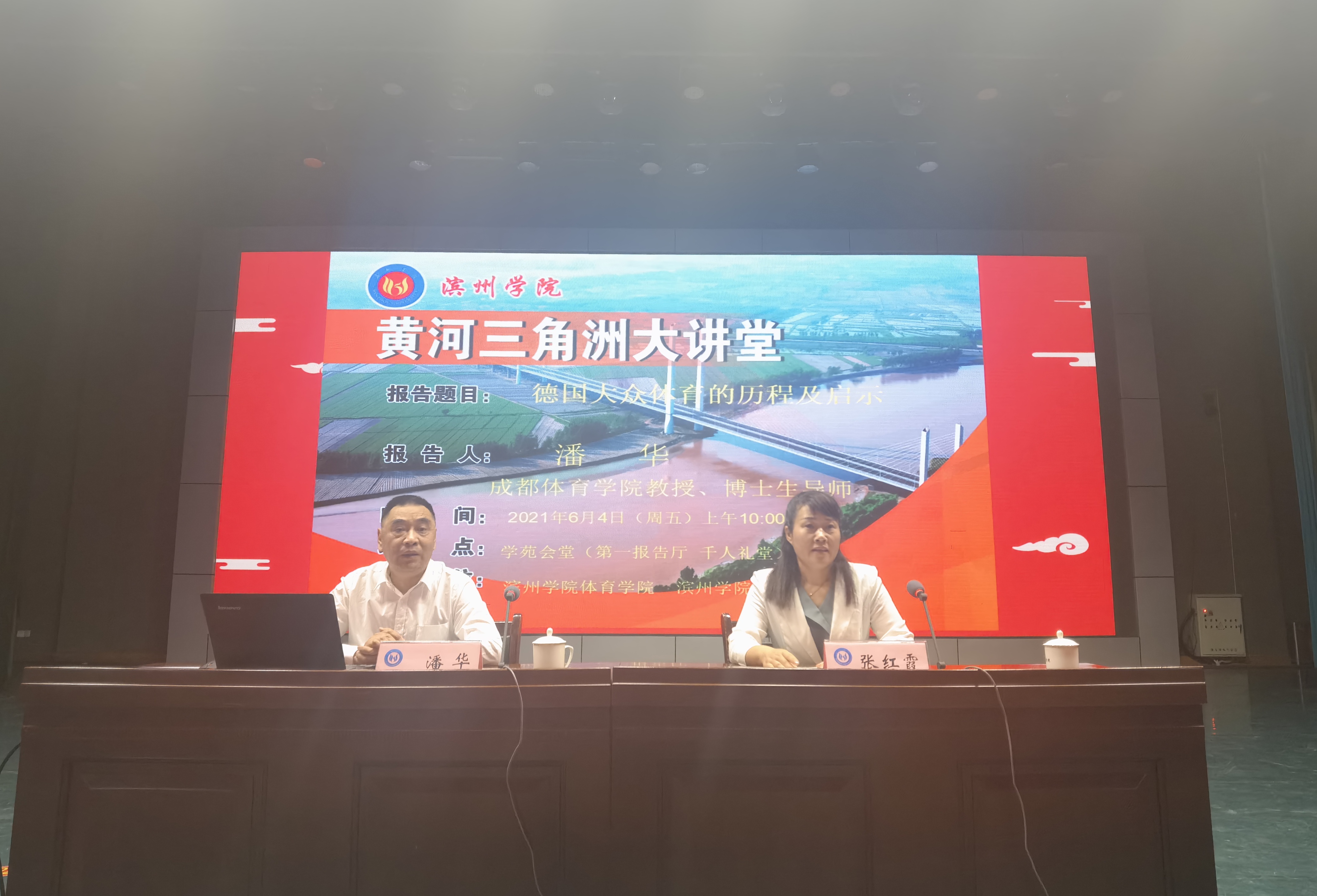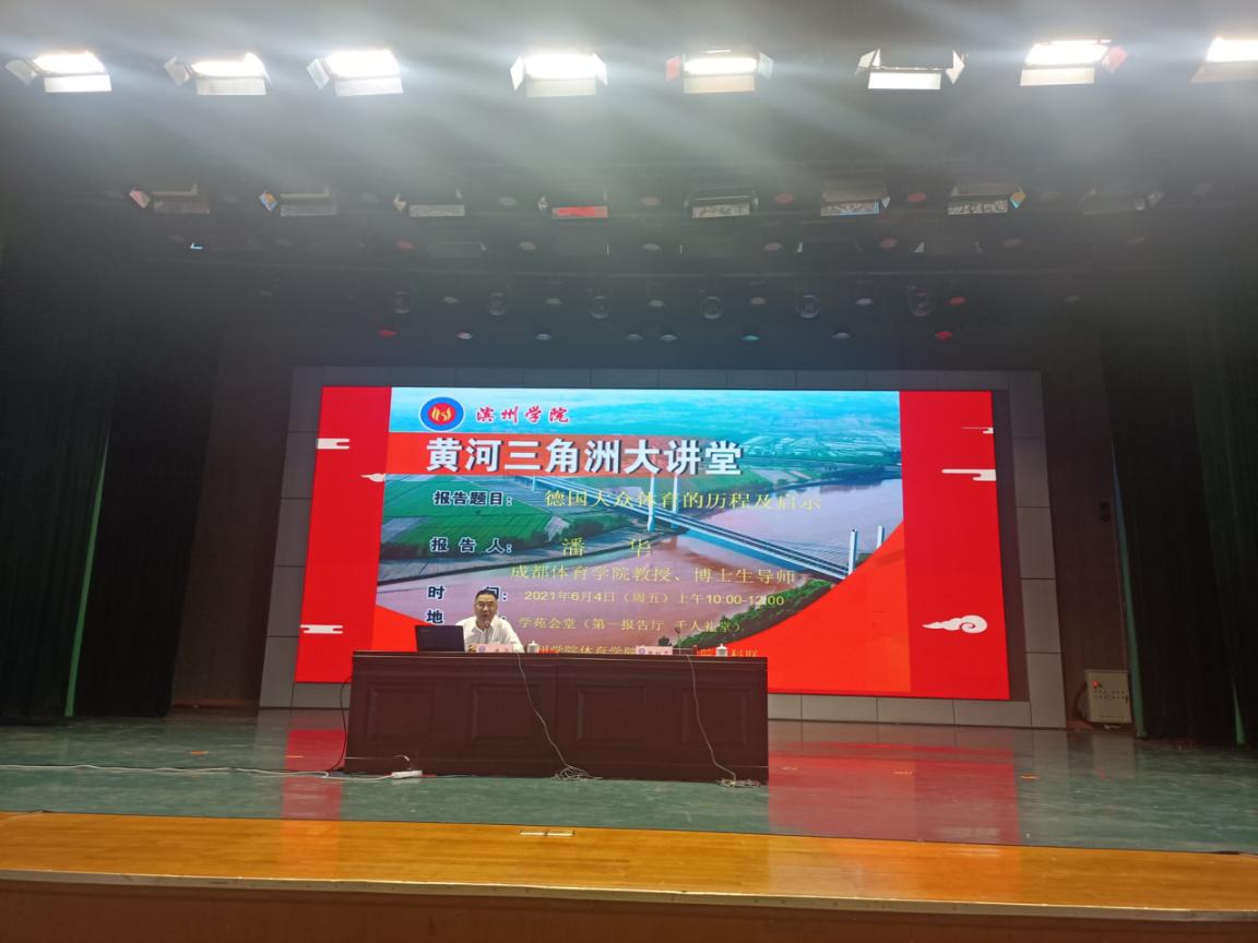 6月4日成都英国365集团博士生导师潘华教授应邀在滨州学院学苑会堂作题目为《德国大众体育的发展历程及启示》的讲座,英国365集团院长张红霞教授主持,英国365集团党总支书记马新民及学院师生共计260余人参加。