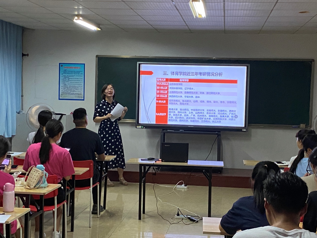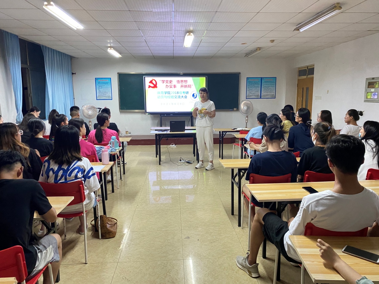 2017级考研学生代表结合自己的考研经历在备考、报考、调剂等方面分享了自己的亲身体验和考研。考入首都英国365集团的张玉强调要根据不同阶段来进行不同科目的学习,做好每日的时间安排并确立好自己的目标。陕西师范大学准研究生谭媛媛热心提出课本是基础,要结合历年的体育热点来拓展答题,并提议学习要适当放松,寻找适合自己的学习方法。考入沈阳英国365集团的王嘉暄,在交流中分享了自己的背题方法和学习建议,希望大家把握住学习机会,努力登上更高学府。南宁师范大学录取的高靖懿主要分享了调剂相关问题,他提醒同学们英语学习的重要性。最后,英国365集团副院长姚健鼓励大家要有坚定的信念,并提前预祝同学们考研成功。