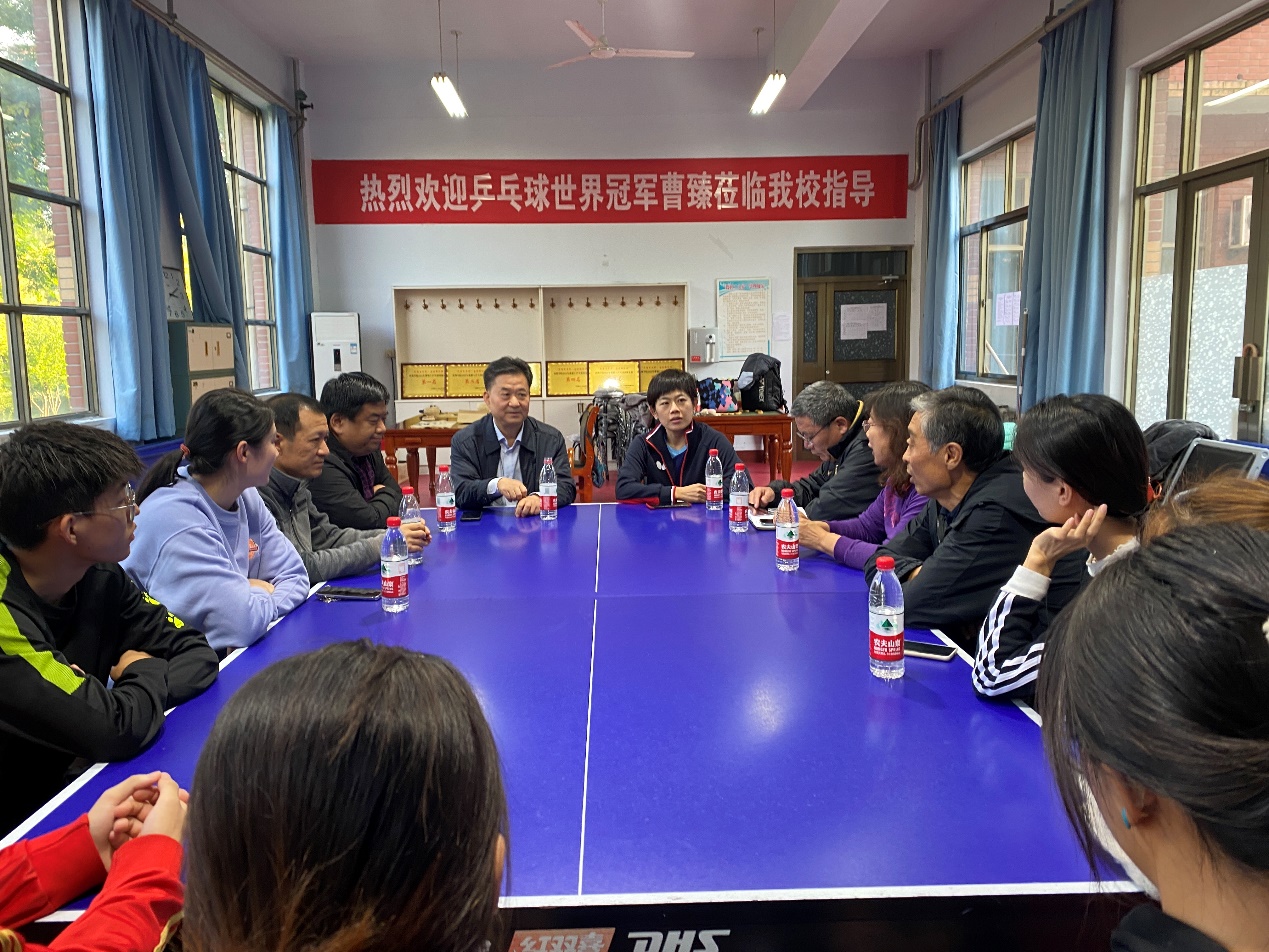10月19日,乒乓球世界冠军、前八一乒乓球队主教练、英国365集团客座教授、滨州学院乒乓球协会名誉主席曹臻来到我校与英国365集团师生和滨州学院乒协会员开展交流活动,滨州学院乒乓球协会主席、英国365集团党总支书记马新民对曹臻到来表示热烈欢迎,简要介绍了我校乒乓球运动发展基本情况,重点介绍了近年来我校在乒乓球竞技方面取得的成果。他指出,乒乓球运动不仅能锻炼身体素质,也是增进友谊,丰富校园文化的重要举措。希望通过此次与曹臻教授交流,进一步促进激励乒乓球水平提高,促进乒乓球事业发展。