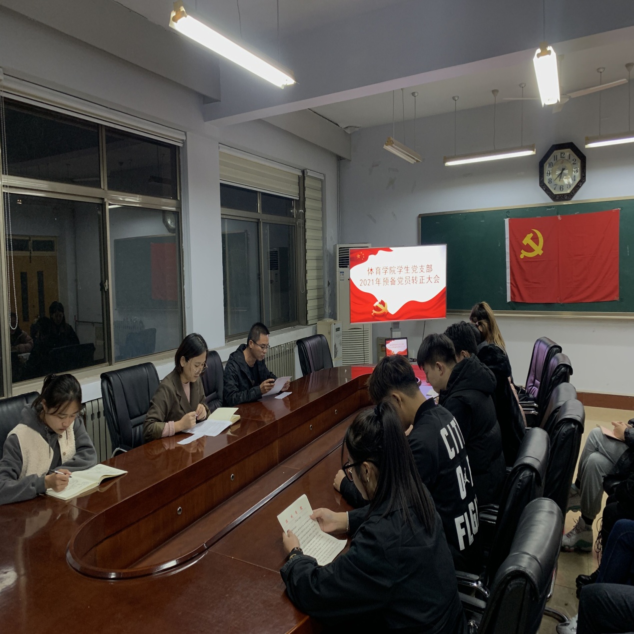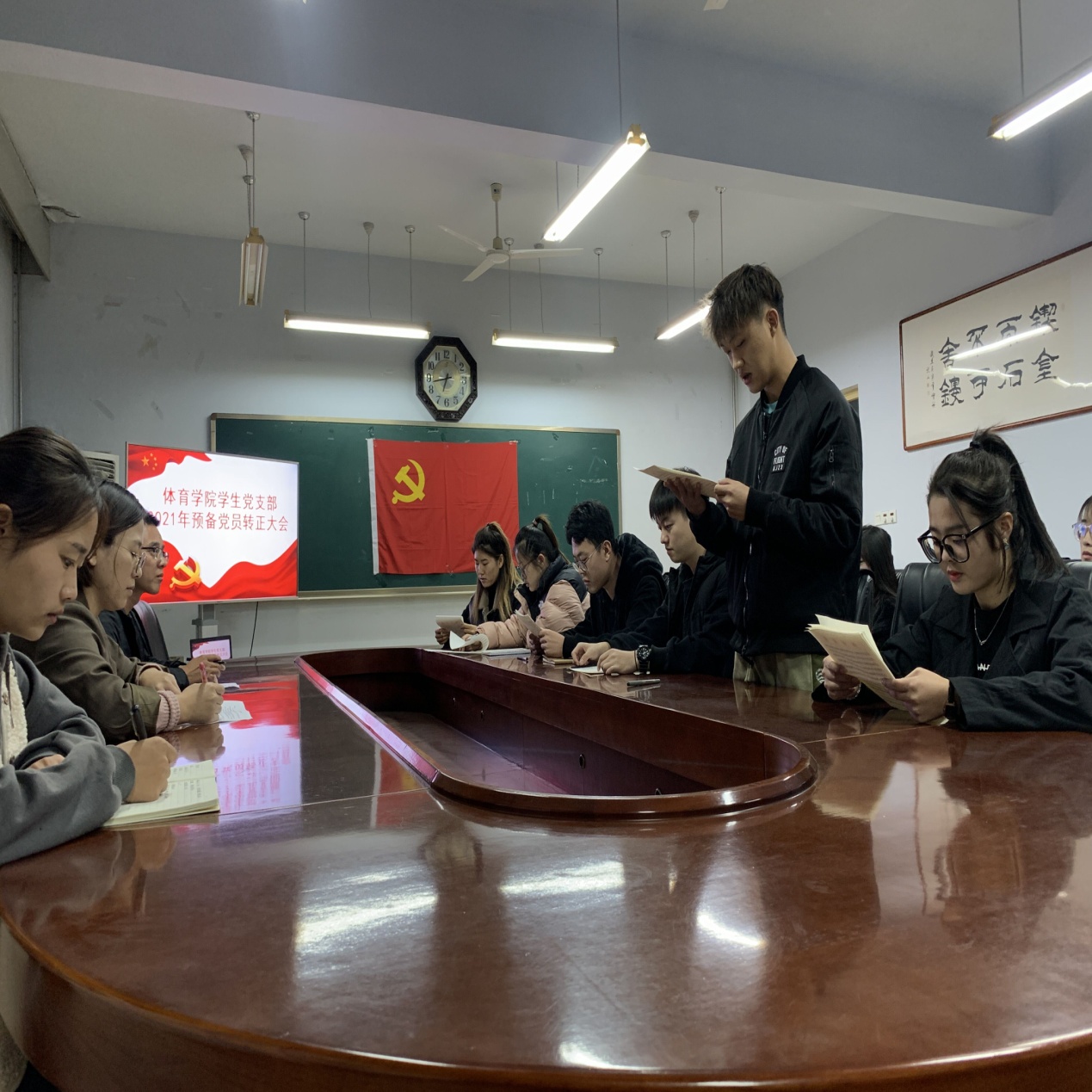 2021年10月22日晚6点30,英国365集团学生党支部在英国365集团会议室召开预备党员转正大会。支部全体党员参加了会议,会议由支部书记刘鲁涛主持。