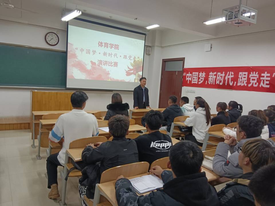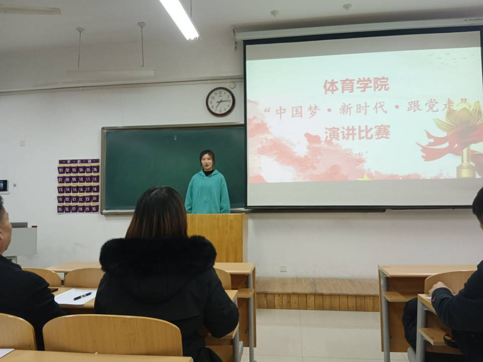 参赛的选手是经初赛选拔的优秀选手,有普通学生也有学生干部,比赛紧紧围绕“中国梦·新时代·跟党走”主题,讲述中国共产党团结带领全国各族人民,实现民族独立和人民解放、国家富强和人民幸福的百年光辉历程;这次活动主要目的一是增强同学们爱国、爱党的精神,二是在本次演讲活动中同学们相互学习增强演讲能力,比赛结束评选出名次。最终评出一等奖一个,二等奖一个,三等奖两个,分别是21舞体本二赵慧文,21体教本一高宇峰和21体教本一耿凯悦,21体教本二孙作芳。