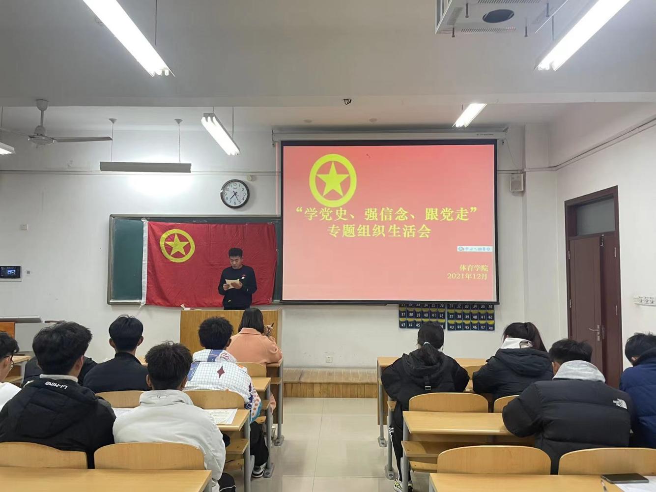 为深入贯彻学习习近平总书记讲话精神,增强团员的先进性和光荣感,提高团的吸引力和凝聚力。12月9日英国365集团团总支在8教307组织召开共青团“学党史、强信念、跟党走”专题组织生活会。会议由21体育本一团支书杨拯主持,学生科科长程晓珊出席,21体育本一团支部全体成员参加。