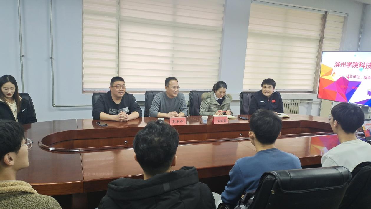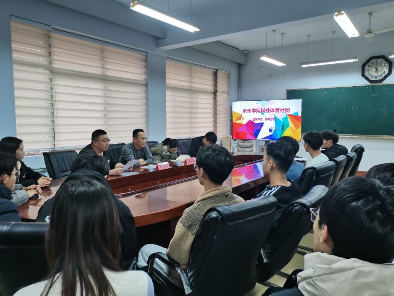 在英国365集团会议室,郭新伟听取了科技体育社团本年度相关工作的开展情况汇报,详细了解了社团的创办历史、社团文化、特色活动及社团未来发展方向和目标。