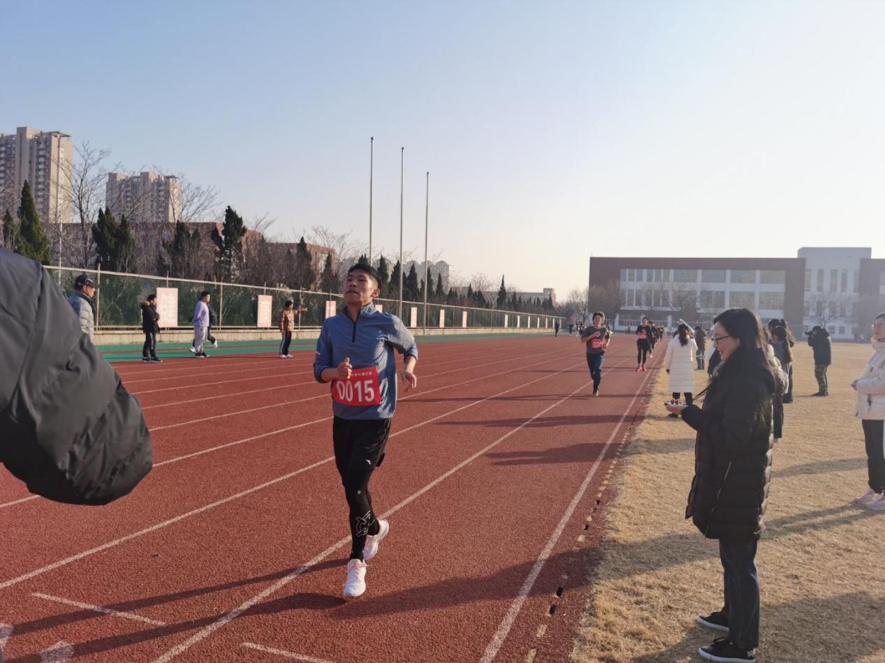 在一声清脆的哨响后,比赛正式开始。跑道上运动员们努力奔跑着,凛冽的寒风并不能阻挡运动员们的热情,虽然同学们都气喘吁吁,但没有人停止奔跑的脚步;有的即使不小心摔倒也站起来继续坚持到最后,这种不放弃的精神感染着全校师生;跑道旁啦啦队的加油呐喊声此起彼伏,现场的气氛温暖了这个冬天。裁判员老师认真负责,仔细的记录着运动员们的圈数。志愿者们在终点搀扶运动员,为运动员拿衣服,为运动员拍照,也忙得不亦乐乎。