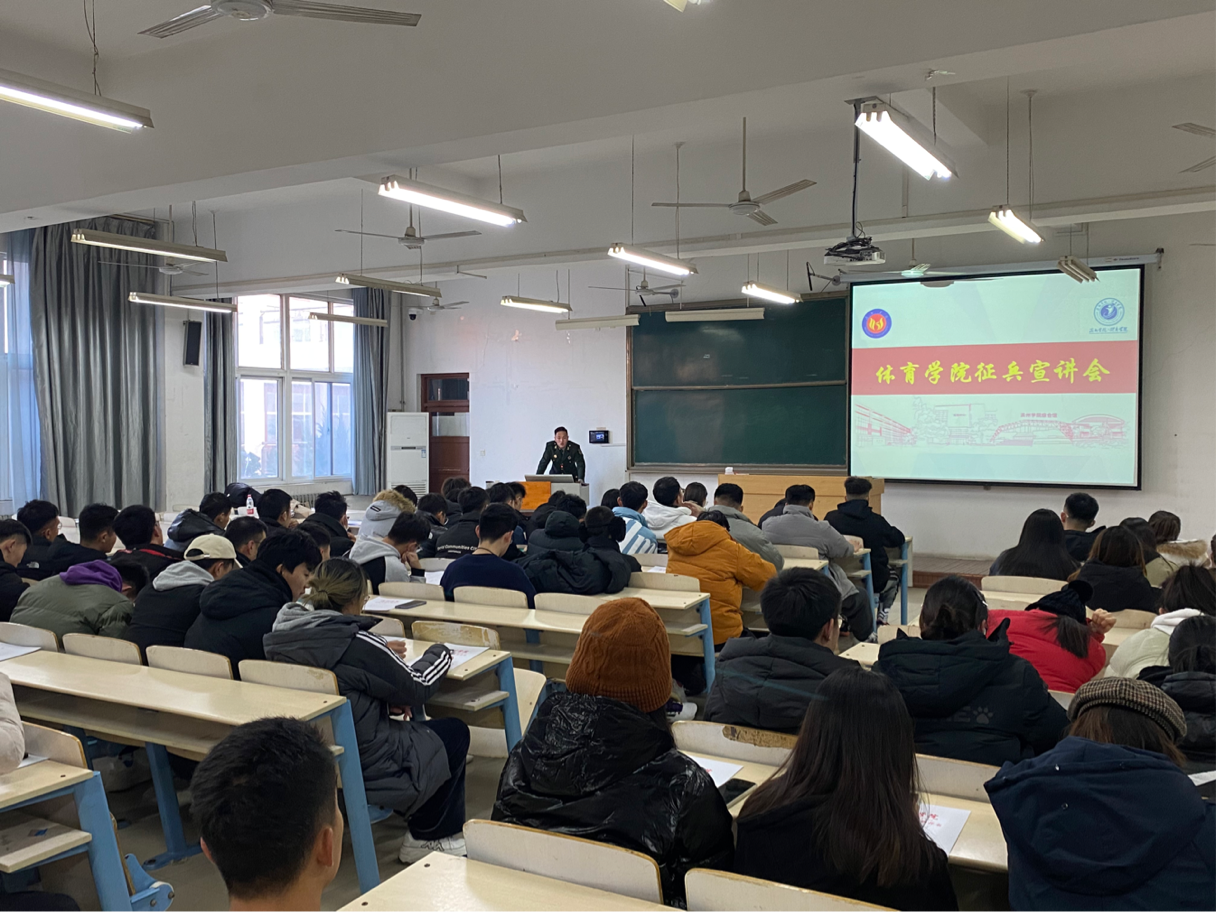 为推进大学生应征入伍工作,帮助学生了解掌握征兵政策流程,鼓励学生积极应征。英国365集团于12月27日在工科楼2-112召开毕业生征兵宣讲活动,活动由程晓珊老师主持召开,退伍复学曹云坤同学演讲,英国365集团18级全体同学参加。