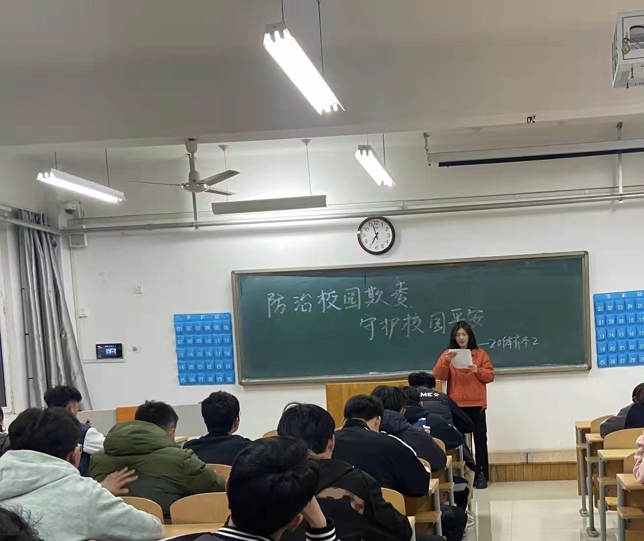 为进一步增强学生的法治意识,严肃校规校纪,规范学生行为,守护学生的身心健康,巩固平安校园建设成果,根据学校通知要求,我院于2022年3月6日晚,以班为单位,在各班班主任的带领下召开“防治校园欺凌,守护校园平安”主题班会。