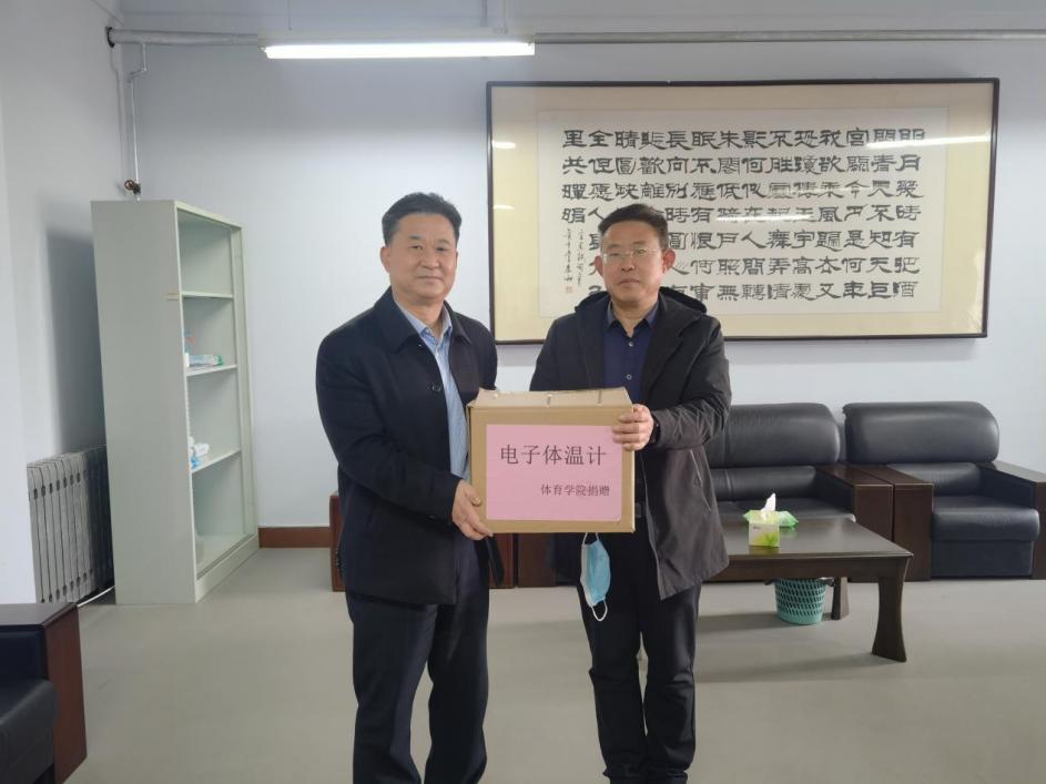 英国365集团党总支书记马新民代表英国365集团向学校新冠肺炎疫情防控工作专班捐赠防疫物资