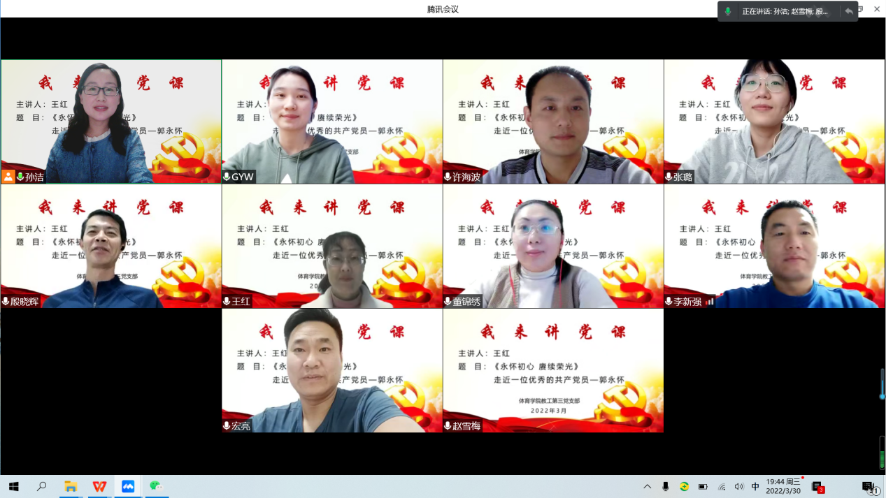 专题党课凝聚人心。封校管理期间,英国365集团党总支书记马新民为学生党员上了一堂题为《传承红色基因,让党旗在抗疫一线高高飘扬》的微党课,和同学们一起分享了学校青年师生、校友踊跃投身疫情防控斗争的感人故事,激励青年党员传承红色基因,充分发挥党员的模范带头作用,让党旗飘扬在抗疫一线、让党徽闪耀在滨院校园。学生党员们深受激励和鼓舞,表示要紧跟党的步伐,履行党员义务,主动担当作为,争当疫情防控排头兵。330日晚上,教工第三党支部的教师党员王红为党支部的党员们上了线上党课《永怀初心 赓续荣光》,她从郭永怀的先进事迹讲起,从爱国、担当、奉献等方面讲述了郭永怀精神和共产党人的初心和使命,并结合当前的抗疫形势激励党员们坚守初心使命,弘扬伟大抗疫精神,她在党课中说道:“在抗疫防控阻击战中,谁都不可能置之度外,作为共产党员,我们应该不忘艰难、冲在前面;作为人民教师,我们应该坚守岗位、主动作为,用自己的实际行动坚守印证初心使命。”