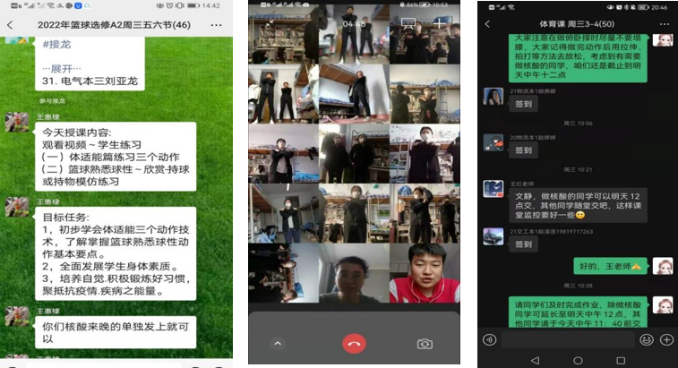 相对于线下教学,线上教学对于学生的组织与管理更加具有挑战性,任课教师需要随时提醒学生集中课堂注意力,英国365集团教师提出多种解决办法:多平台使用如微信群+对分易相结合、理论讲授与练习实践相结合、课堂讲授与师生互动相结合、作业提交与随堂抽查相结合、体育健身与防疫教育相结合,利用空闲时间在活动区域进行体育锻炼,提醒学生遵守防疫要求,保持体能训练,注意锻炼安全,线上教学效果得以不断提升。