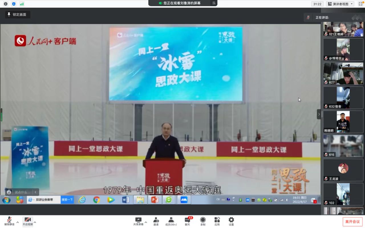 为进一步发扬奥运精神,提高发展我院学子爱国、拼搏的中国体育精神。4月16日晚,在刘鲁涛老师主持下,组织全院学生在腾讯视频会议上共同观看“千万师生同上一堂冰雪思政大课”。