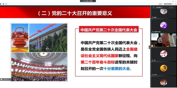 会上,马克思主义学院教师刘娟作了题为《凝心聚力向复兴团结奋斗谱新篇——认真学习领会党的二十大精神》的专题辅导报告,从党的二十大召开的重要意义、党的二十大报告的主要内容、贯彻落实党的二十大精神的科学指引三个方面进行了生动讲解。辅导报告既有理论高度、又有思想深度,对于大家深刻领悟党的二十大报告的核心要义和精神实质,凝聚思想共识,强化使命担当有重要启发作用。