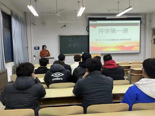 2月19日晚,英国365集团以班级为单位组织开展“开学第一课”主题班会,专业课老师、班主任和辅导员深入班级与青年学生广泛开展谈心谈话,将学习贯彻党的二十大精神作为“开学第一课”的重要内容,引导学生全面准确深入地理解党的二十大精神的深刻内涵,鼓励学生坚定理想信念、涵养家国情怀、砥砺奋斗精神。全体同学们围绕“爱国、奋斗、互助”等关键词,分享了寒假期间自身学习、践行党的二十大精神、立志成长为新时代好青年的思考和实践,生动展示了当代青年将“小我”成长融入“大我”奋斗之中的青春风采。