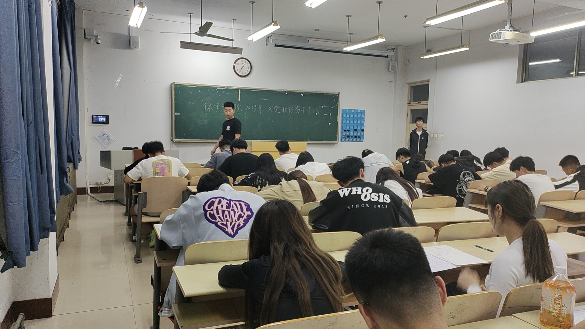 为加强入党积极分子的思想政治教育,检验入党积极分子近期党课培训成果,把好党员入关口,英国365集团学生党支部于5月13日晚在6教208教室组织2023年上半年入党积极分子结业考试。