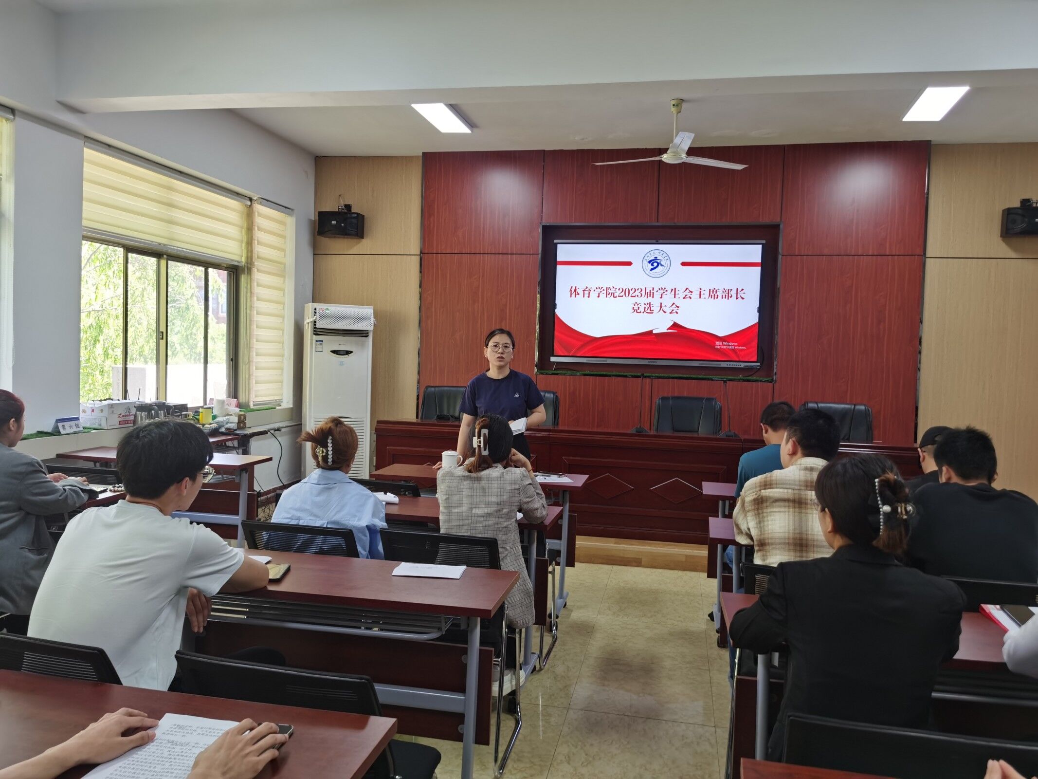 为深化共青团改革实施方案,加强学生组织管理,我院于5月13日在实验楼B7-317举行2023届学生会主席部长竞选大会,团总支书记程晓珊老师、副书记刘鲁涛老师以及学生会主席团成员出席此次大会。
