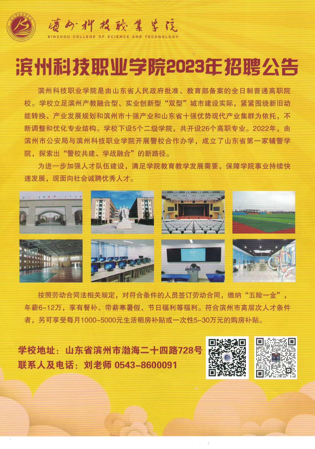 滨州科技职业学院2023年招聘公告