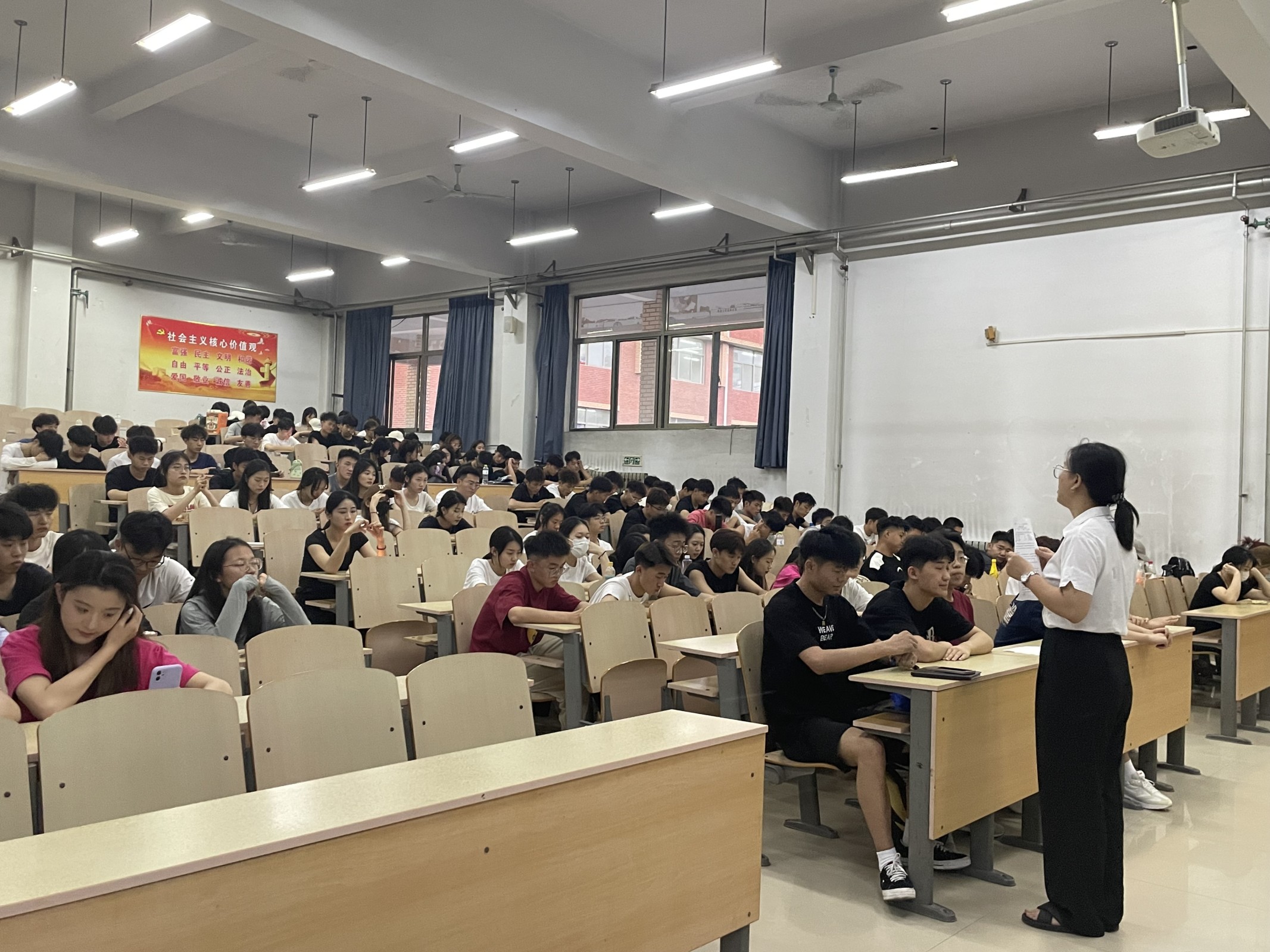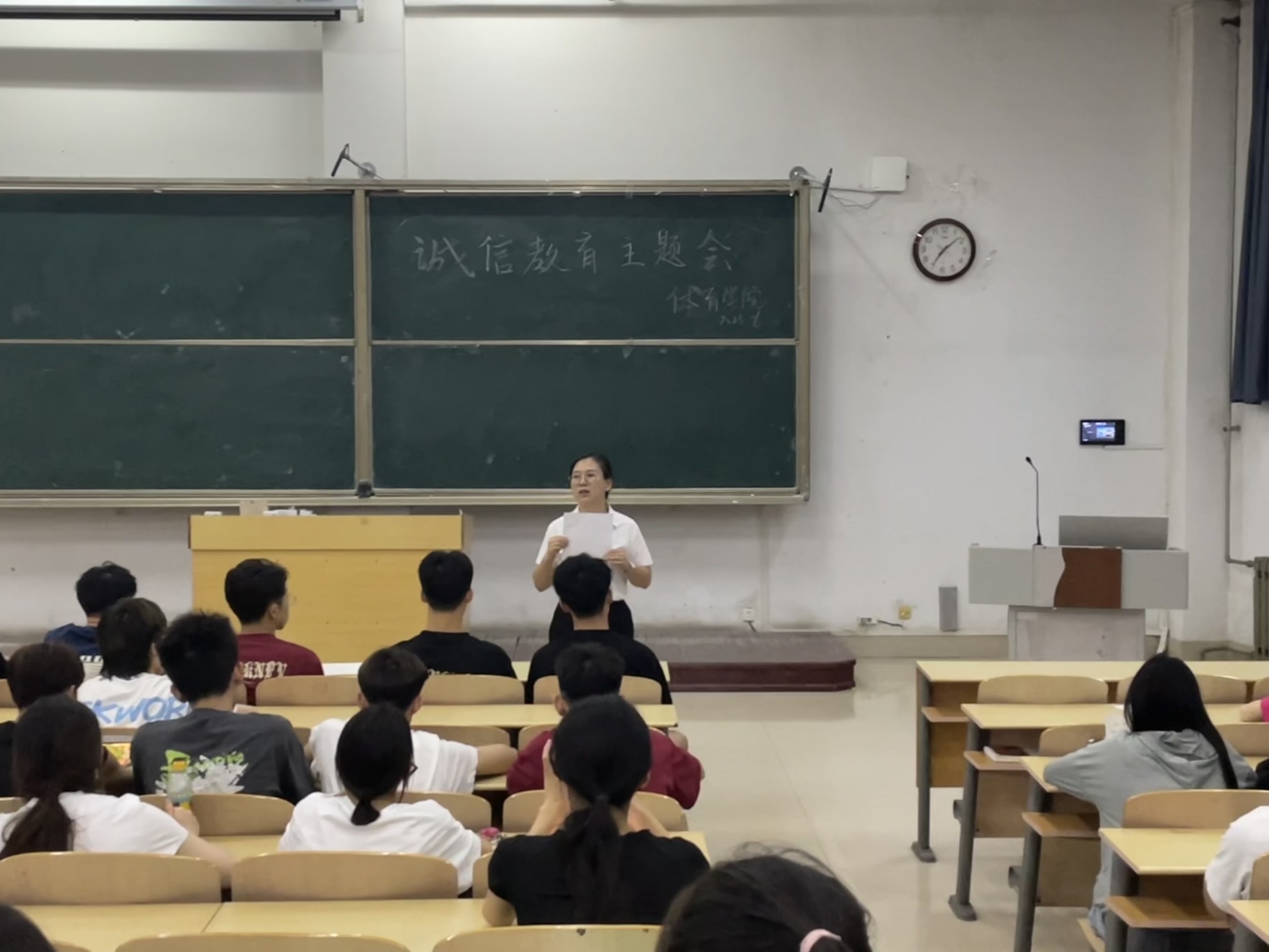 班会上各班班主任点明了会议主题,教育同学们诚信是人类社会的基本道德规范之一,也是个人品德的重要体现,大家应该树立正确的价值观和人生观。要求学生们要培养良好的学习习惯和学术道德,不抄袭、不作弊,严格遵守学术规范和诚信原则。无论是平时的考试,还是毕业论文,学习生活的方方面面都要做到诚实守信。引导同学们珍惜大学的学习时光,以考试为契机,充分利用一切时间,讲究学习方法,认真复习备考,带着扎实的基础知识踏进考场,以诚信的态度考出诚信学风。