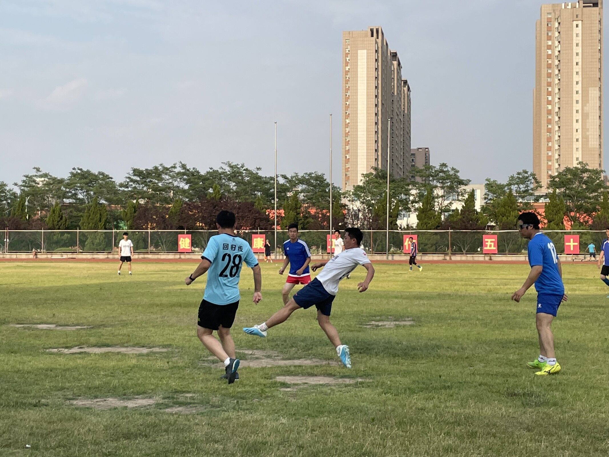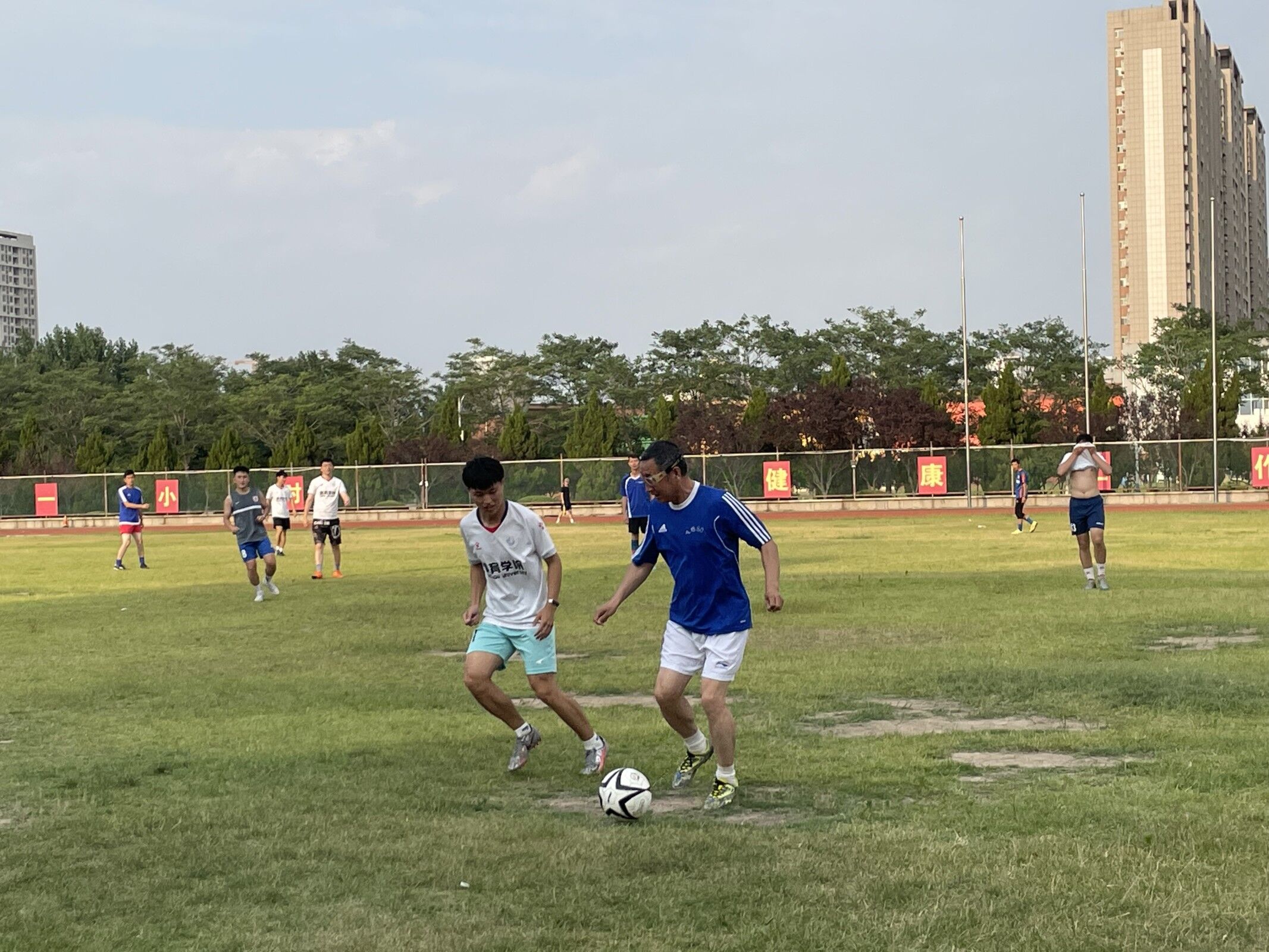 为加强毕业生文明离校教育,丰富校园文化,增进师生感情,6月11日下午,英国365集团在学校田径场举办了2023届“毕业杯”师生足球友谊赛。由学院副院长李振率领13名教师组成教师足球队和19、21级足球专项学生组成学生代表队。