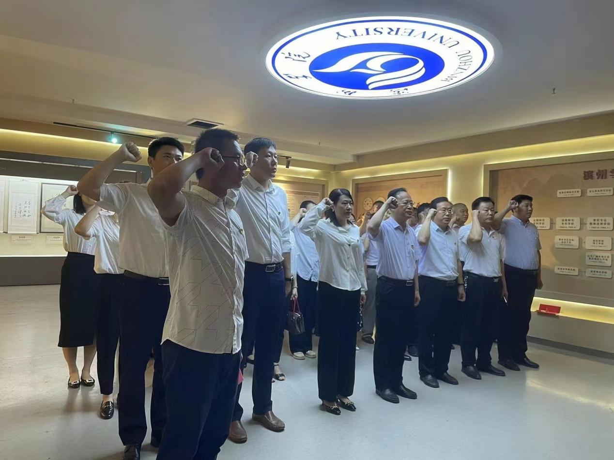 随后,党员同志们共同参观了校史馆,通过认真观看展厅的历史图片、文献资料,深切地感受学校厚重的历史积淀、丰硕的办学成果和坚韧的进取精神,进一步增强了老师们对学校的认同感、归属感和责任感。最后,全体党员面对党旗重温入党誓词,重忆入党初心。大家纷纷表示,要持续深入学习贯彻习近平新时代中国特色社会主义思想,在今后的工作中,坚定理想信念,牢记初心使命,永葆党员本色,以更加饱满的精神、更加昂扬的斗志,为学校高质量发展奋力拼搏、奋勇前进。