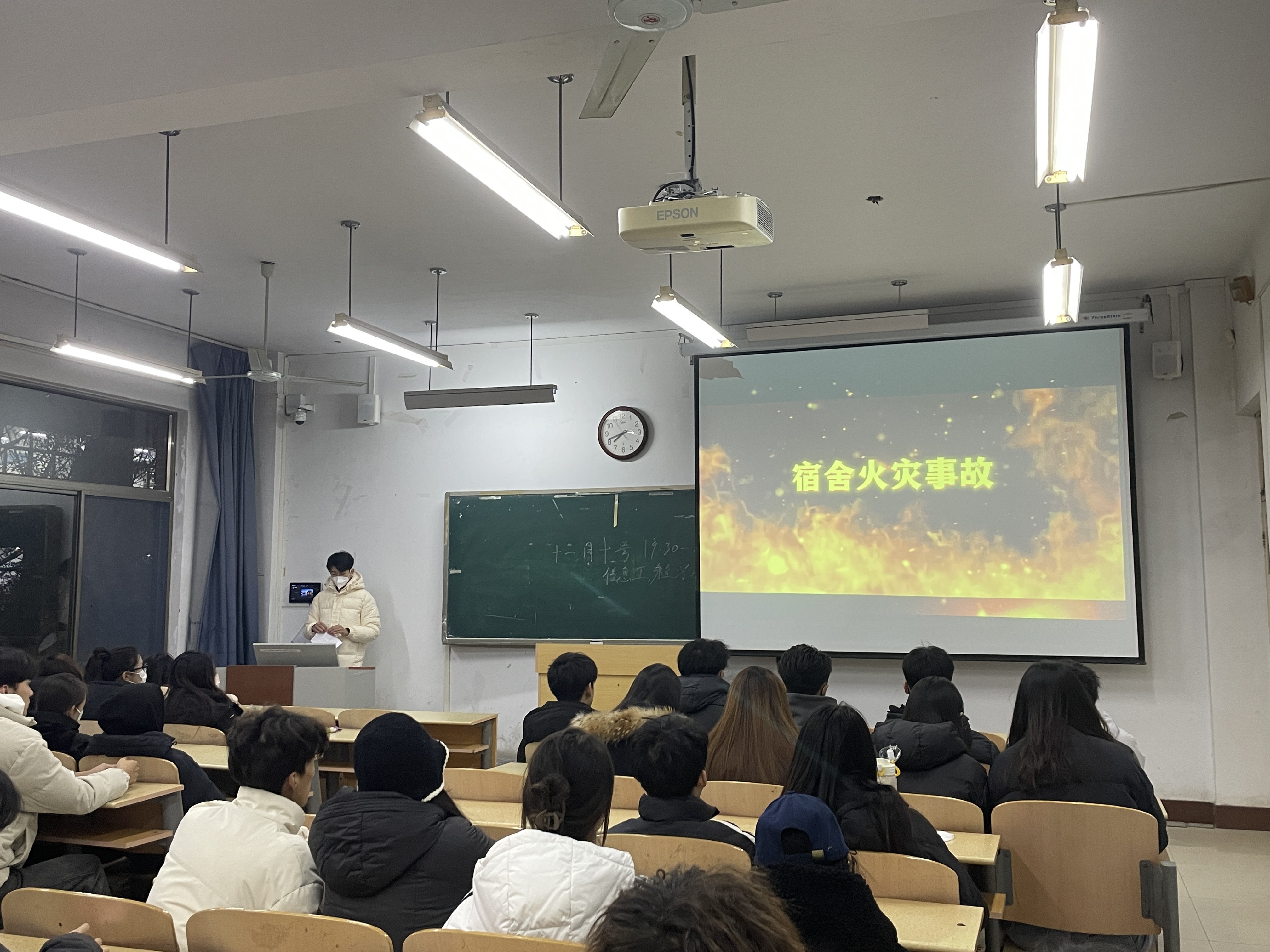 班会以全国119消防宣传日为契机,以“预防为主,生命至上”为主题组织开展第32个全国消防安全教育日消防宣传活动。主题班会上,班主任组织班内同学观看了消防安全宣传视频,面向全体同学解读了消防安全知识、常见消防安全问题和消防安全防范措施等,让同学们深刻认识到火灾的危害性,明白消防安全的重要性,使同学们对消防安全有了更深入的认识了解。班会最后班主任进一步强调了宿舍纪律要求,禁止宿舍内私接电源、违规使用电器,严禁外出不断电、吸烟、使用明火等行为。