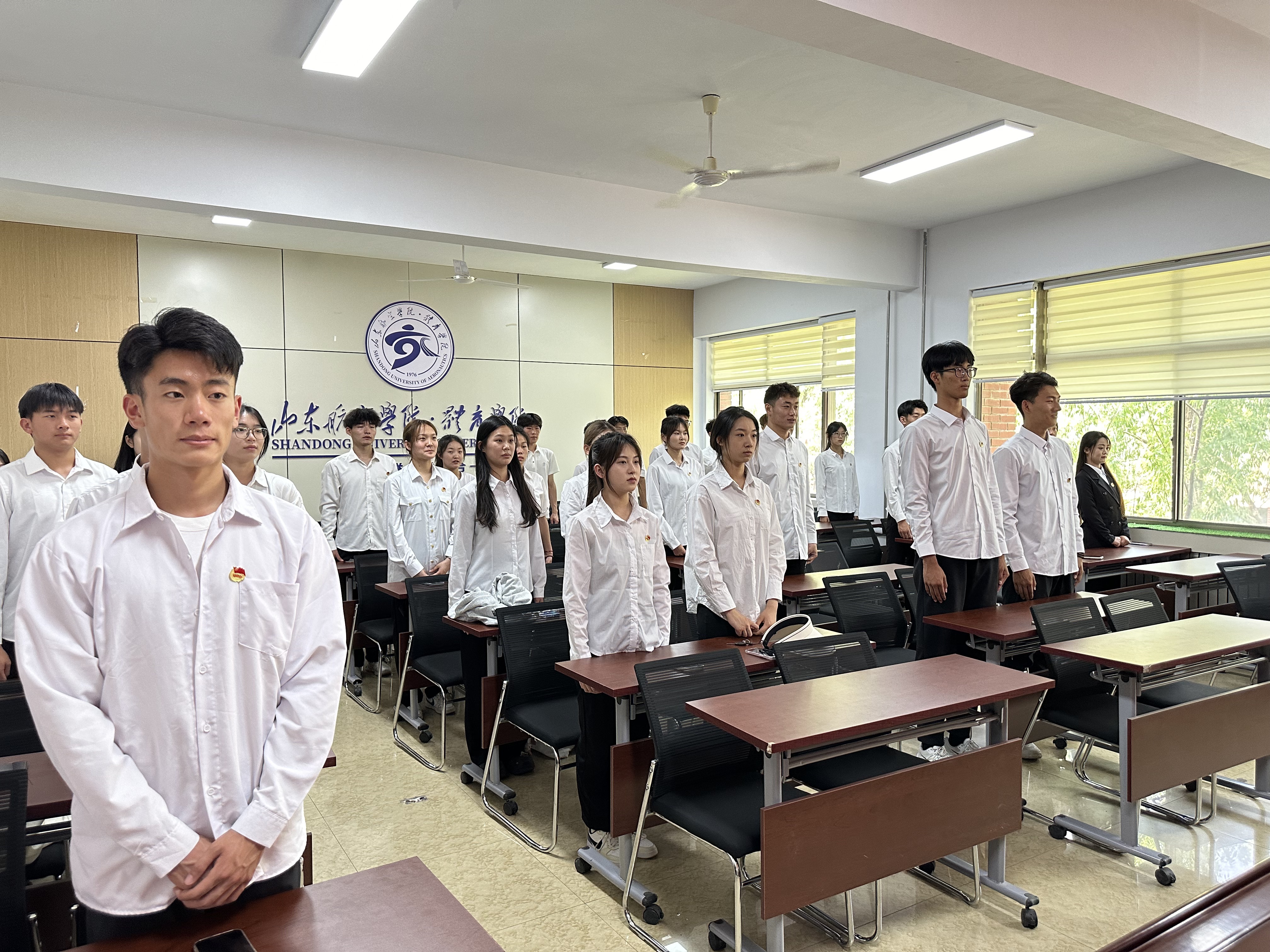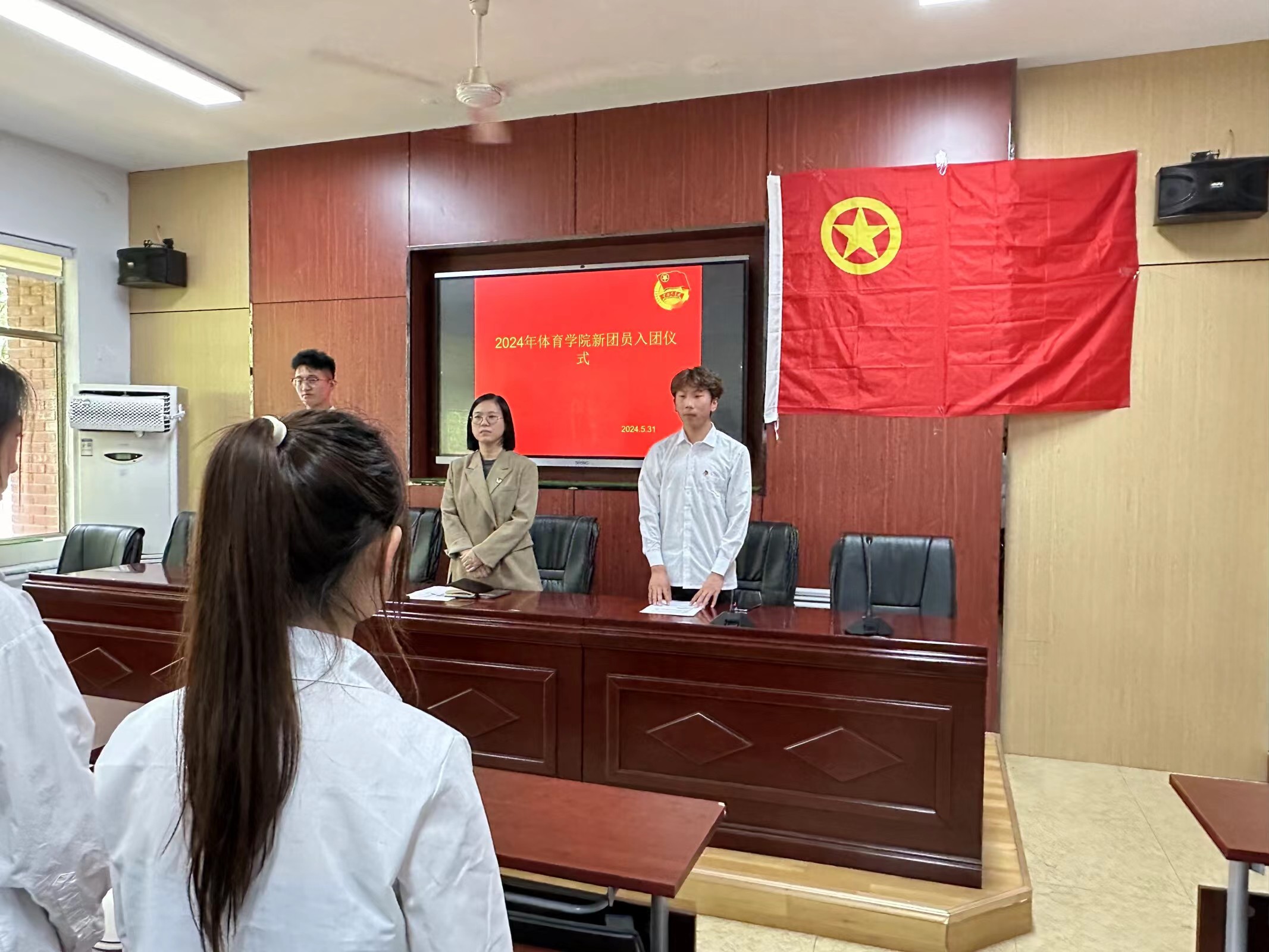 入团仪式在庄严的国歌声中拉开帷幕,全体同学肃然起立,高唱国歌。大会由院学生会秘书长娄金主持,首先宣读新团员名单,罗玮佳等27名同学光荣地成为了中国共产主义青年团的一员。学生团干部依次为新团员颁发团徽、团章。新团员面向团旗庄严宣誓,老团员重温誓词,袁英硕同学领誓,铮铮誓言表达着他们身为一名共青团员的光荣感和责任感,展现出他们为共产主义奋斗的信念与决心。新团员们表示将以更加饱满的热情投入学习和工作,努力提升自己的专业技能,为学院的发展贡献自己的力量。程晓珊老师对新团员们表示祝贺,希望新团员们继承共青团的优良传统,成长为有理想、敢担当,能吃苦、肯奋斗的新时代好青年,用青春的智慧和汗水谱写祖国的壮丽篇章。