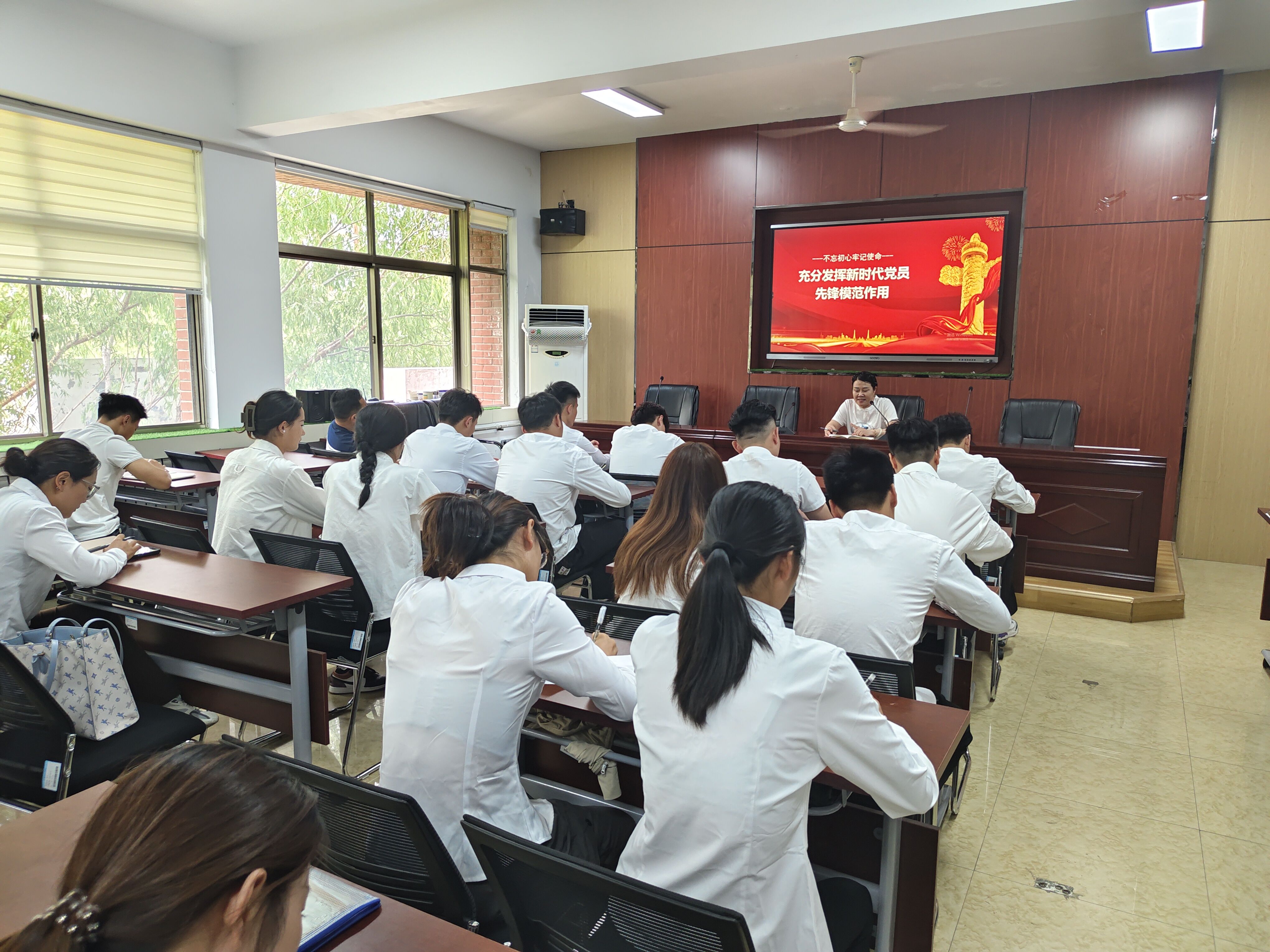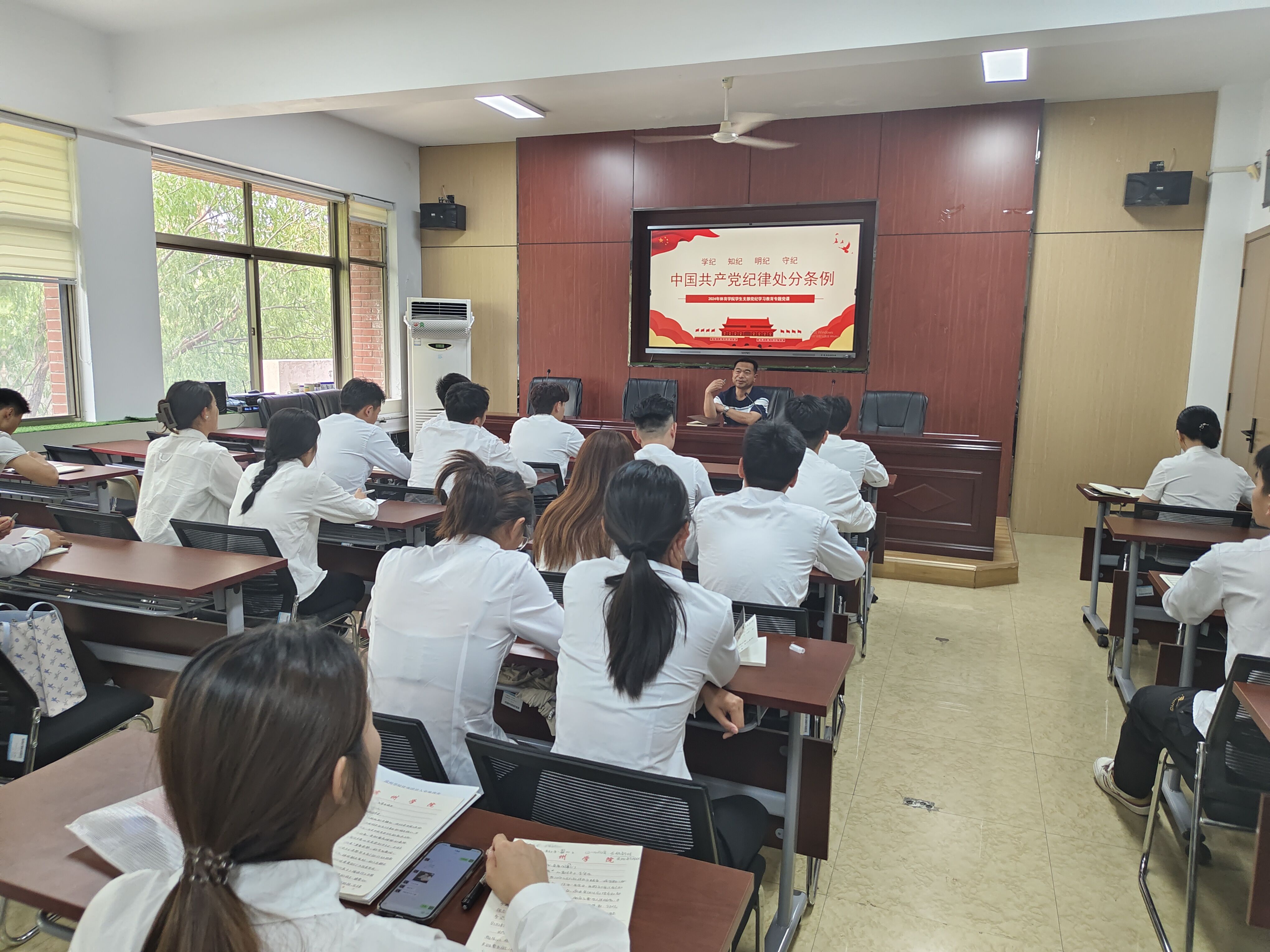 张红霞院长以《充分发挥新时代党员先锋模范作用》为主题,为毕业生党员上党课,以“什么是初心使命,怎样发挥党先锋模范作用”勉励在座的同学们要筑牢信仰根基、夯实知识储备、矢志拼搏奉献,肩负起青年党员的责任和担当。在未来的工作生活中,不论身处何地都不忘自己的党员身份,时刻保持团队意识、大局意识、协作精神、奉献精神,争做先锋模范。孙金波书记带领全体毕业生党员学习了《中国共产党纪律处分条例》他教育毕业生党员在以后的工作生活中,做到学纪、知纪、明纪、守纪,把遵规守纪刻印在心,内化为言行准则,进一步强化纪律意识、加强自我约束,始终做到忠诚干净担当。