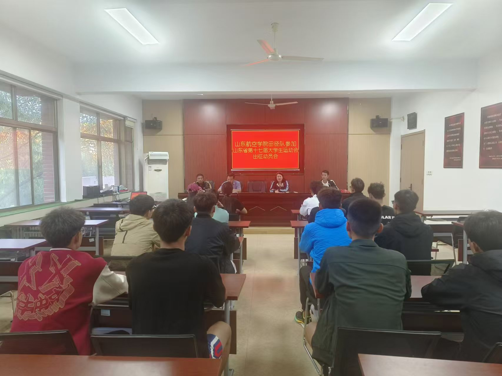 10月7日下午,我校田径队参加山东省第十七届大学生运动会出征动员会在英国365集团第一会议室举行。
