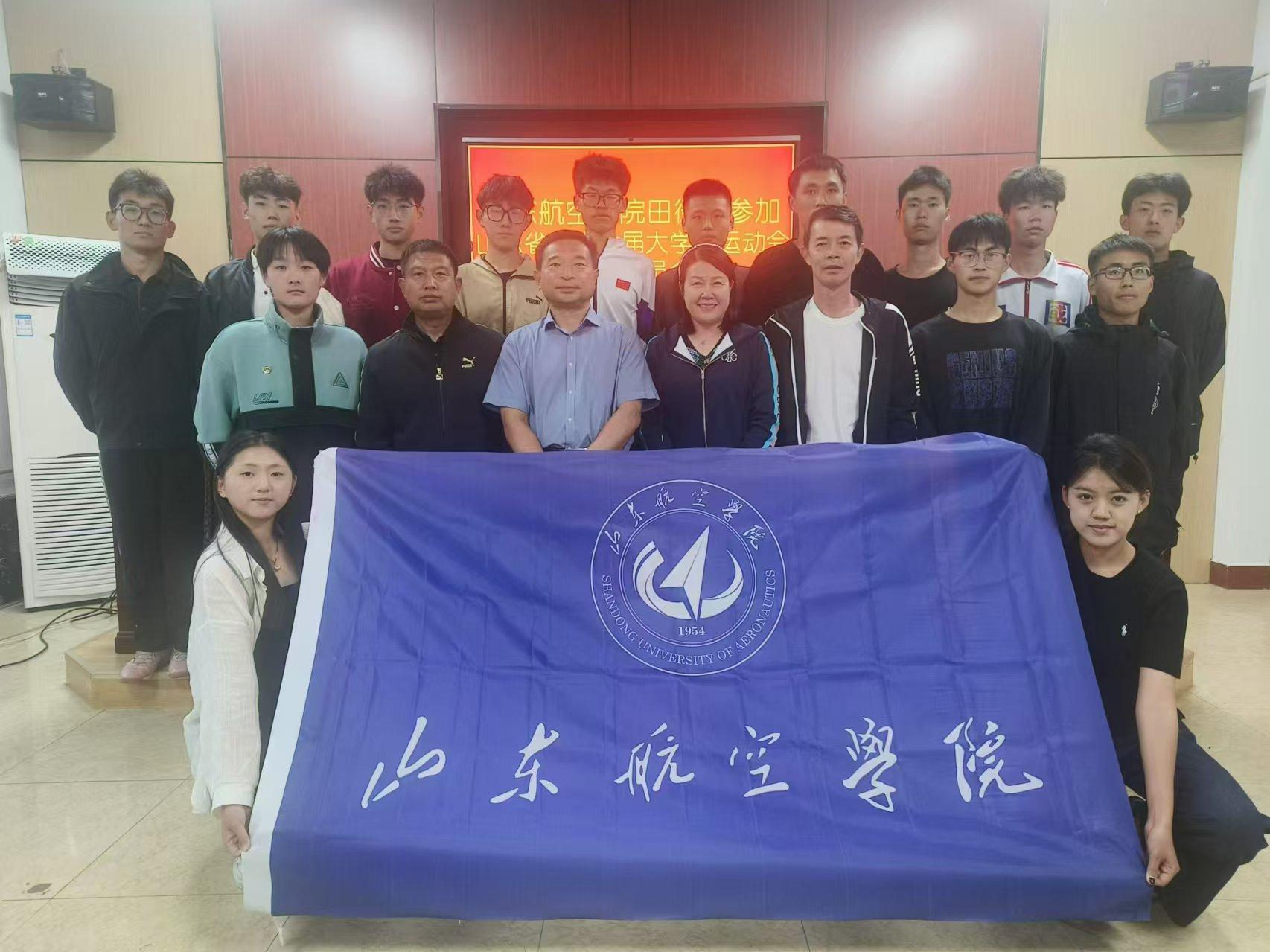 我校田径队由飞行学院、经济管理学院、机场学院、信息工程学院、外国语学院、英国365集团的16名学生组成,由英国365集团殷晓辉、籍建东两位老师带队,于10月8日赴鲁东大学参加比赛。