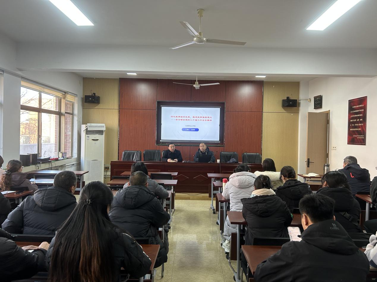 为深入学习贯彻党的二十届三中全会精神,教育引导广大党员干部师生把思想和行动统一到党中央的决策部署上来,切实把党的二十届三中全会精神转化为推动学校改革发展的强大动力,12月23日下午,体育学院在学院第一会议室举办学习贯彻党的二十届三中全会精神专题培训会,学院全体师生党员参加,培训会由党总支副书记孙金波主持。