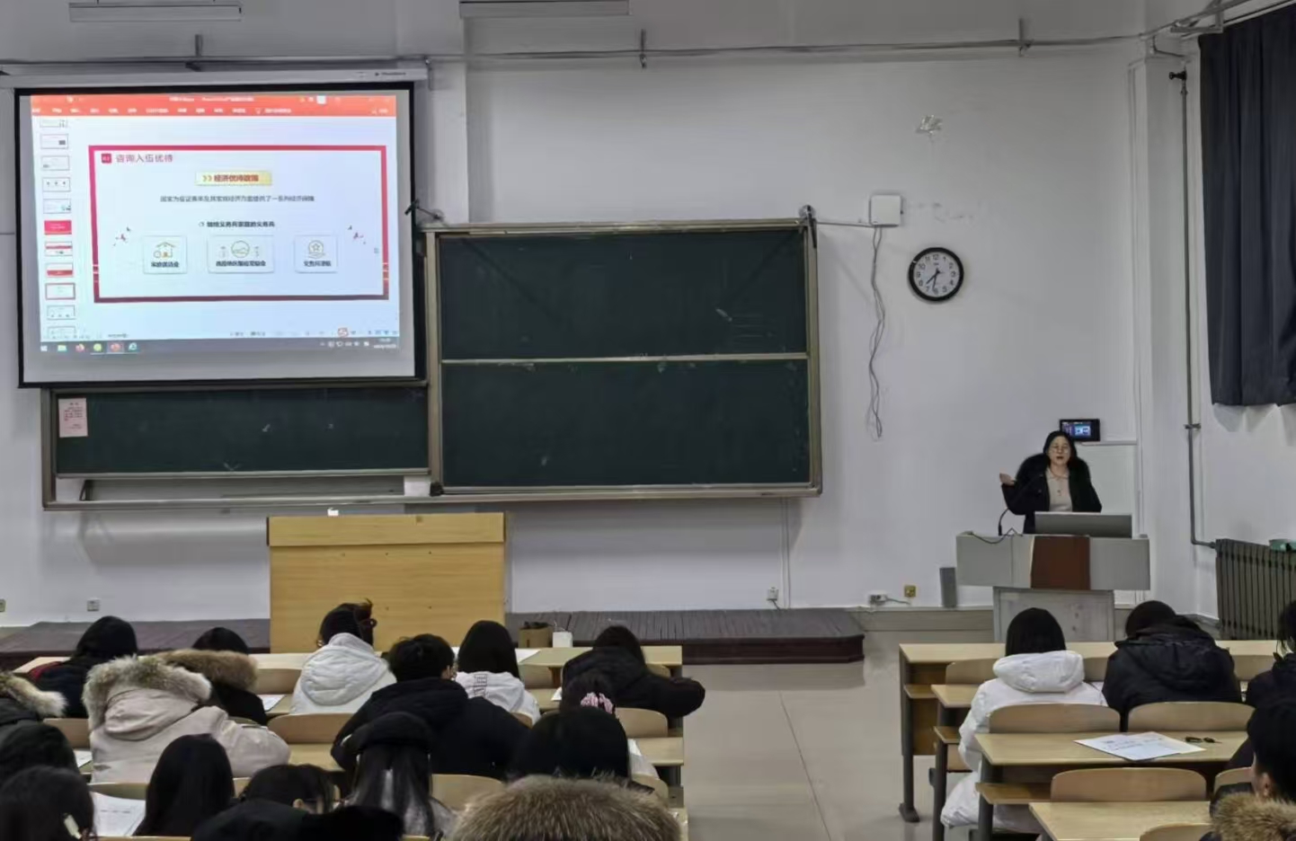 宣讲会上,程晓珊老师对最新征兵政策进行了解读,涵盖了标准条件、征兵流程、入伍优待、学业保障以及未来发展等内容。答疑环节针对学生们比较关注的报名、体检、学费补偿、带编入伍等学生关注的热点问题进行了细致解答。她特别强调,春季征兵与考研考编并不冲突,鼓励同学们积极投身国家强军事业,为祖国的繁荣昌盛贡献青春力量。