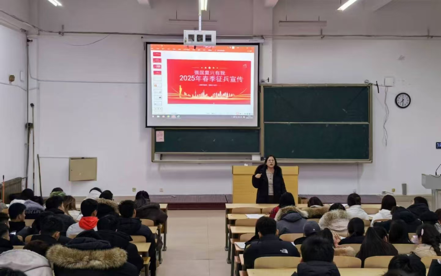 为积极响应国家征兵号召,激发广大学子投身国防事业的热情,英国365集团于12月22日晚在6教207教室成功举办了面向毕业班学生的征兵宣讲会。本次活动由学生科科长程晓珊老师主持,2021级全体学生参与。