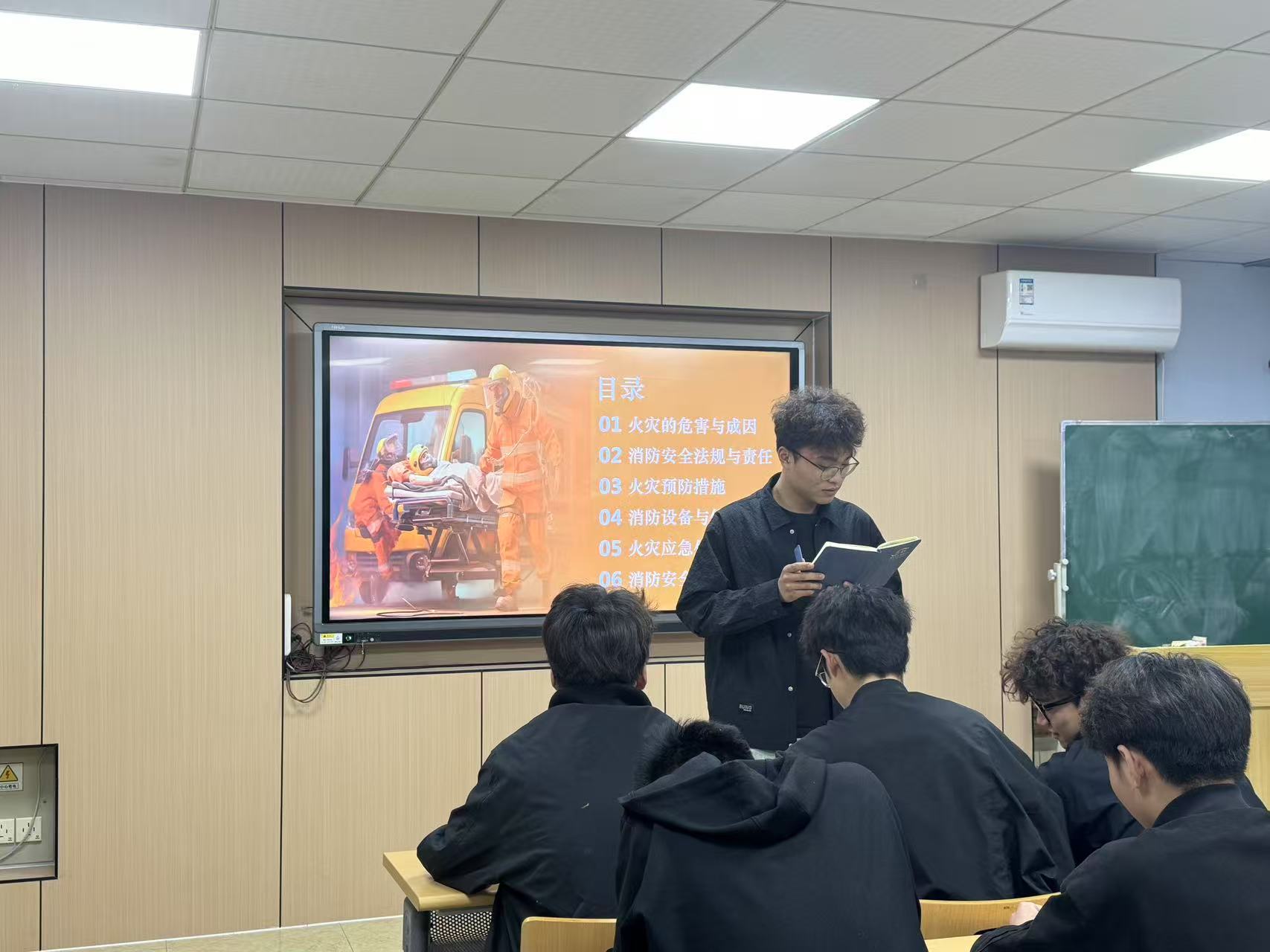 班主任通过案例剖析系统讲解火灾危害成因、消防法规及主体责任,着重强调“隐患即事故”理念,号召学生们自觉维护消防设施、规范日常行为。针对学生生活场景,重点解析电器安全使用、易燃物管理、实验室防火等注意事项,强化“人走电断”“禁烟禁火”等安全习惯养成。在火灾初期如何面应对环节,讲解了灭火器和消防栓的使用方法,要求同学们深刻掌握“提、拔、握、压”四步灭火技巧,确保关键时刻“会用、敢用”。通过情景模拟传授火场自救互救技巧,包括疏散路线识别、防烟面罩佩戴、低姿逃生等实用知识。现场师生互动热烈,2024级学生刘同学表示:“这次培训让我真正意识到消防无小事,特别是灭火器实操让我们面对突发状况更有底气。”