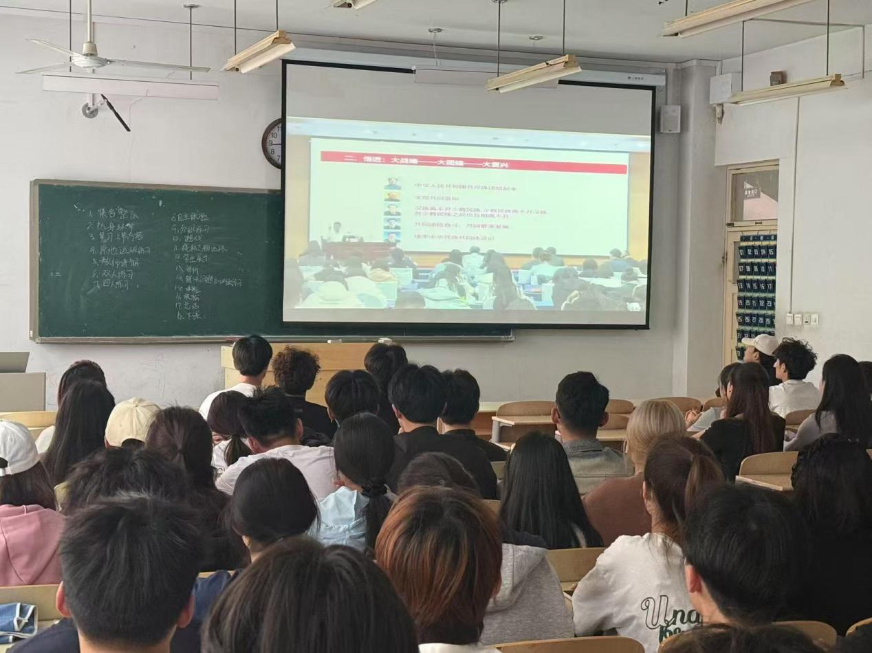 严庆教授授课的题目是《立足新时代铸牢中华民族共同体意识》,从“是什么”“为什么”“怎么做”三个维度展开了全面而深刻的阐述。他解释了中华民族共同体意识的内涵及其提出的历史背景,深入分析了铸牢中华民族共同体意识的重要性,提出了具体的实施路径。他通过详实的史料、生动的案例,将理论知识深入浅出地呈现出来,让师生对中华民族共同体意识有了更为深刻的理解,认识到民族团结对于国家稳定和发展的重要性。