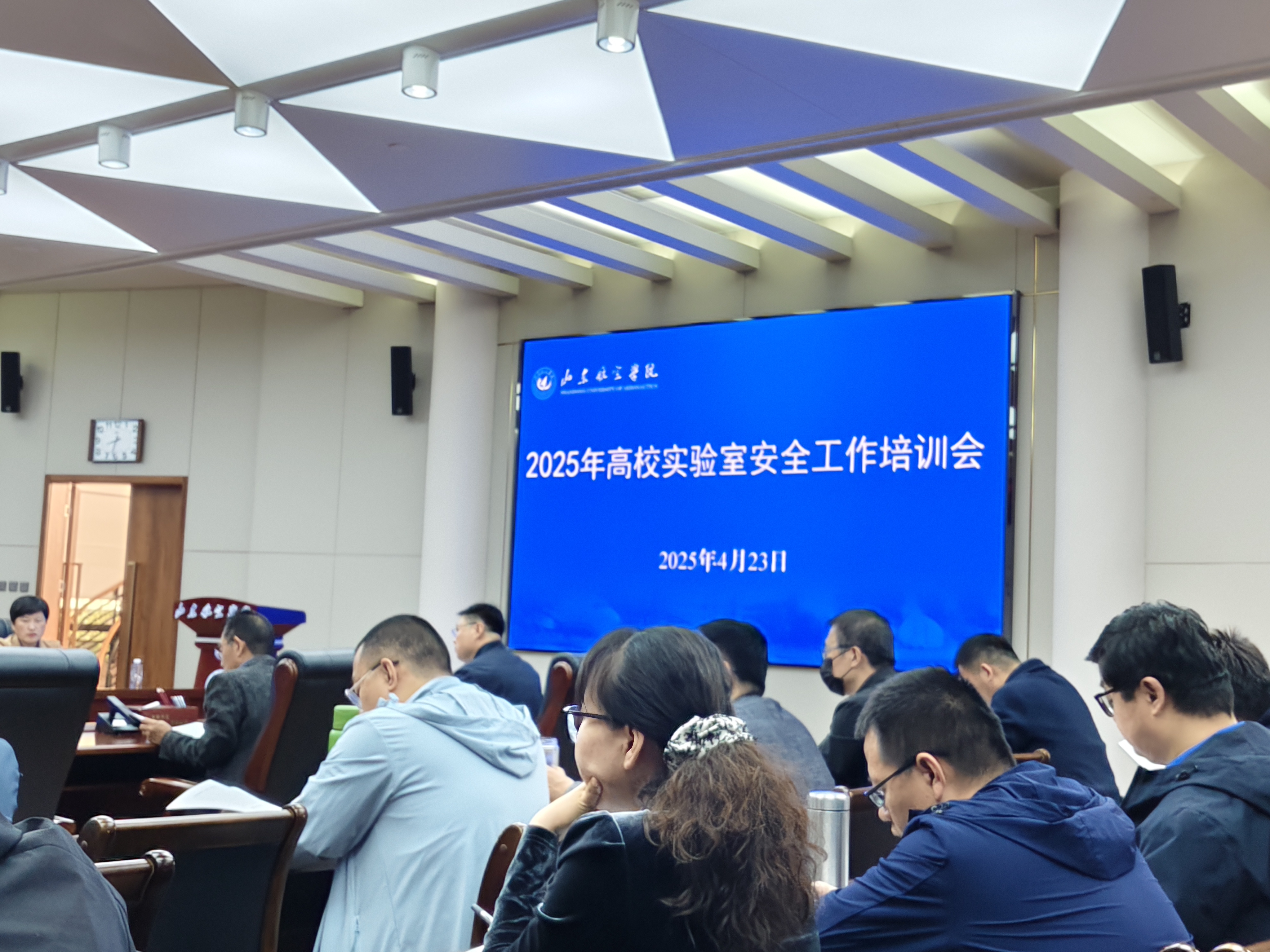 2025年4月23日,我院实验室管理人员、实验教学教师在李振副院长带领下参加学校组织的2025年高校实验室安全工作培训会,通过对高校实验室安全相关政策、基础理论、管理实践内容的学习,对本年度实验室安全工作有了新的认识,提高了实验室安全的意识,加强实验室安全管理责任。