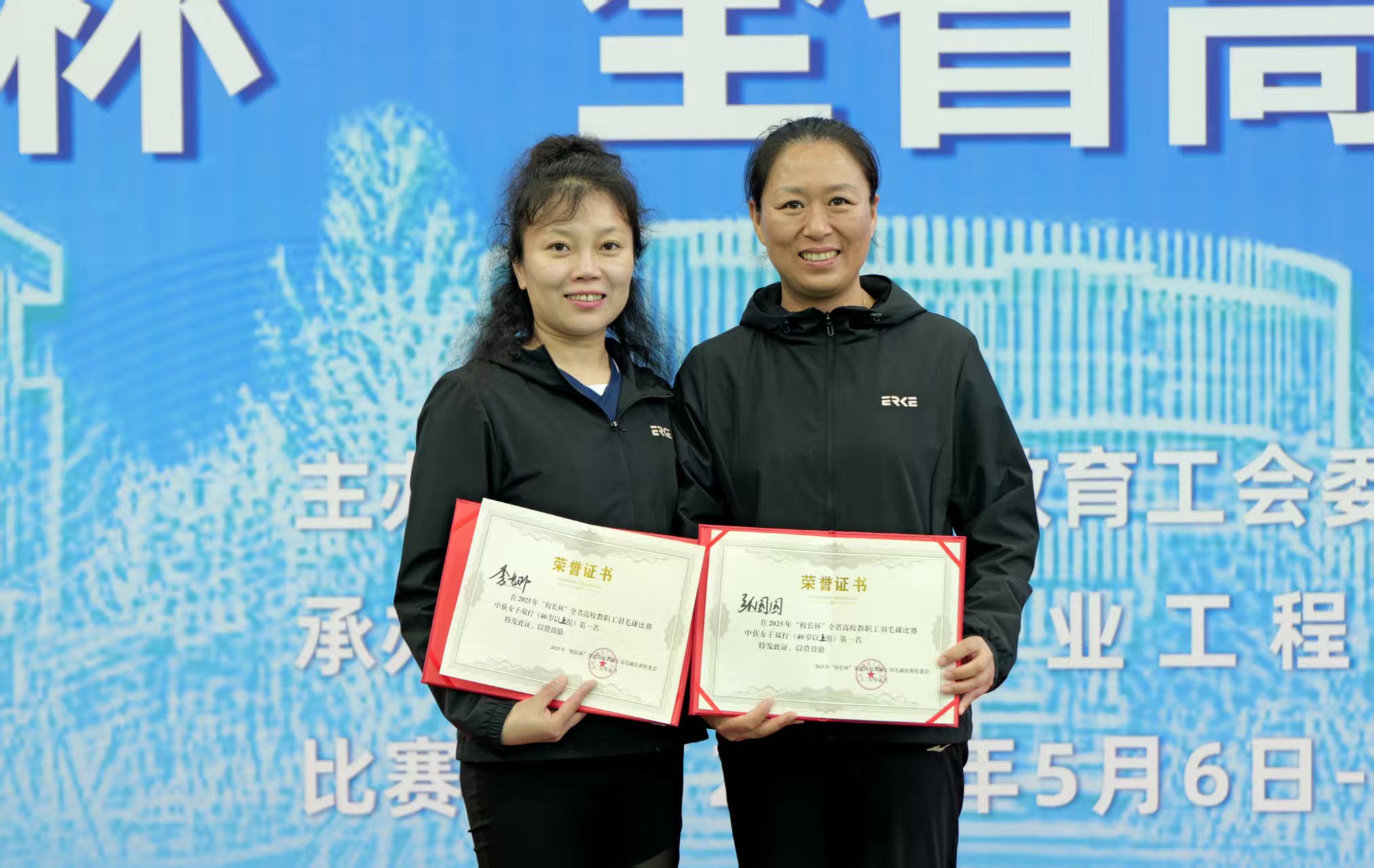 英国365集团教职工张献浩、张园园老师利用课余时间坚持高强度训练,在体能、战术及配合等方面进行针对性提升,为赛场突破奠定基础。团体赛中,队员们凭借默契配合与稳健发挥,一路过关斩将,最终跻身六强;女子双打组合张园园、李娜老师顽强拼搏、力克强敌、卫冕冠军。